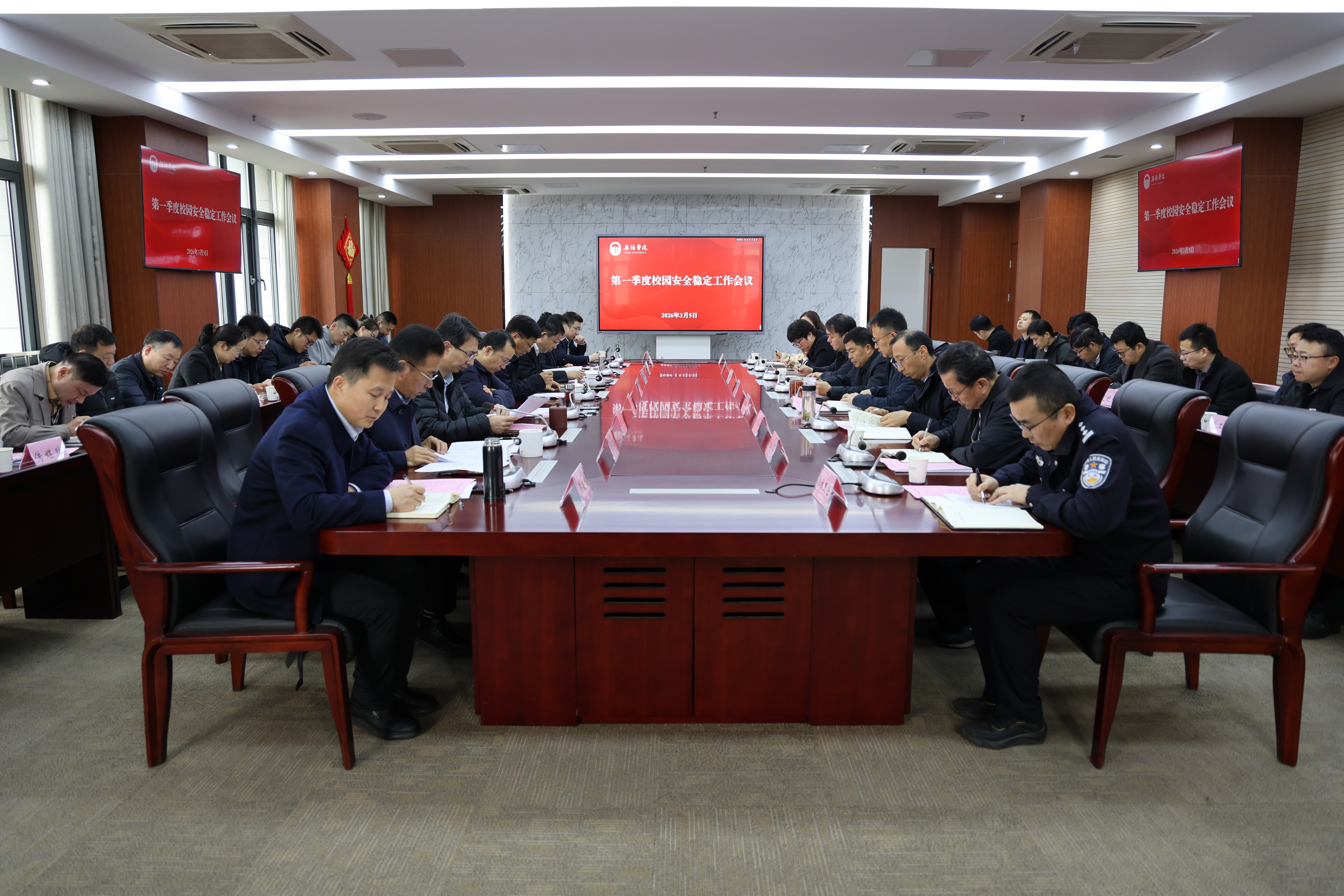 3月5日上午,我校在行政楼327会议室召开第一季度校园安全稳定工作会议,全面分析当前校园安全形势,部署下一阶段重点工作。校党委书记张永宏、校长孙雁飞出席会议并讲话,全体在校校领导出席会议。各职能部门、二级学院党总支负责人和驻校民警参加会议。会议由副校长胡剑凌主持。