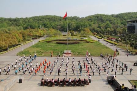 激昂的旋律和着灿烂的笑脸,热烈的阳光下,开心地舒展舞姿。4月22日“舞动滨江”首届教职工健身舞大赛在滨江教学楼广场前举行。除了出差在外的,100多名教职员工参与了比赛,参与率达98%。