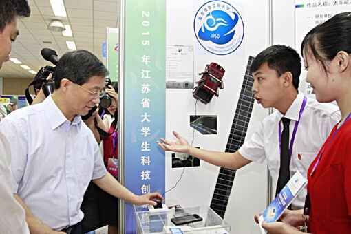 6月6日,第十四届挑战杯江苏省选拔赛决赛暨江苏省大学生科技创新成果展在古城淮安成功举办。副省长曹卫星,团省委书记万闻华等领导亲临现场。我院“太阳能汽车辅助空调”项目成功参展,这是我院首次有科创项目冲进省赛。 现场同学表现优异,曹副省长对我院的项目给予了充分肯定,现场体验了我院的成果,认为该项目有很好的实用和推广价值,鼓励同学们点燃激情,挑战梦想,进一步完善,争取早日投放市场。展会期间,江苏卫视,淮安电视台,淮安日报等多家媒体也对我院参赛项目进行了采访。 有梦想,有目标,有行动,就会有结果。加油!滨江!为辛苦几个月的老师和同学们点赞。