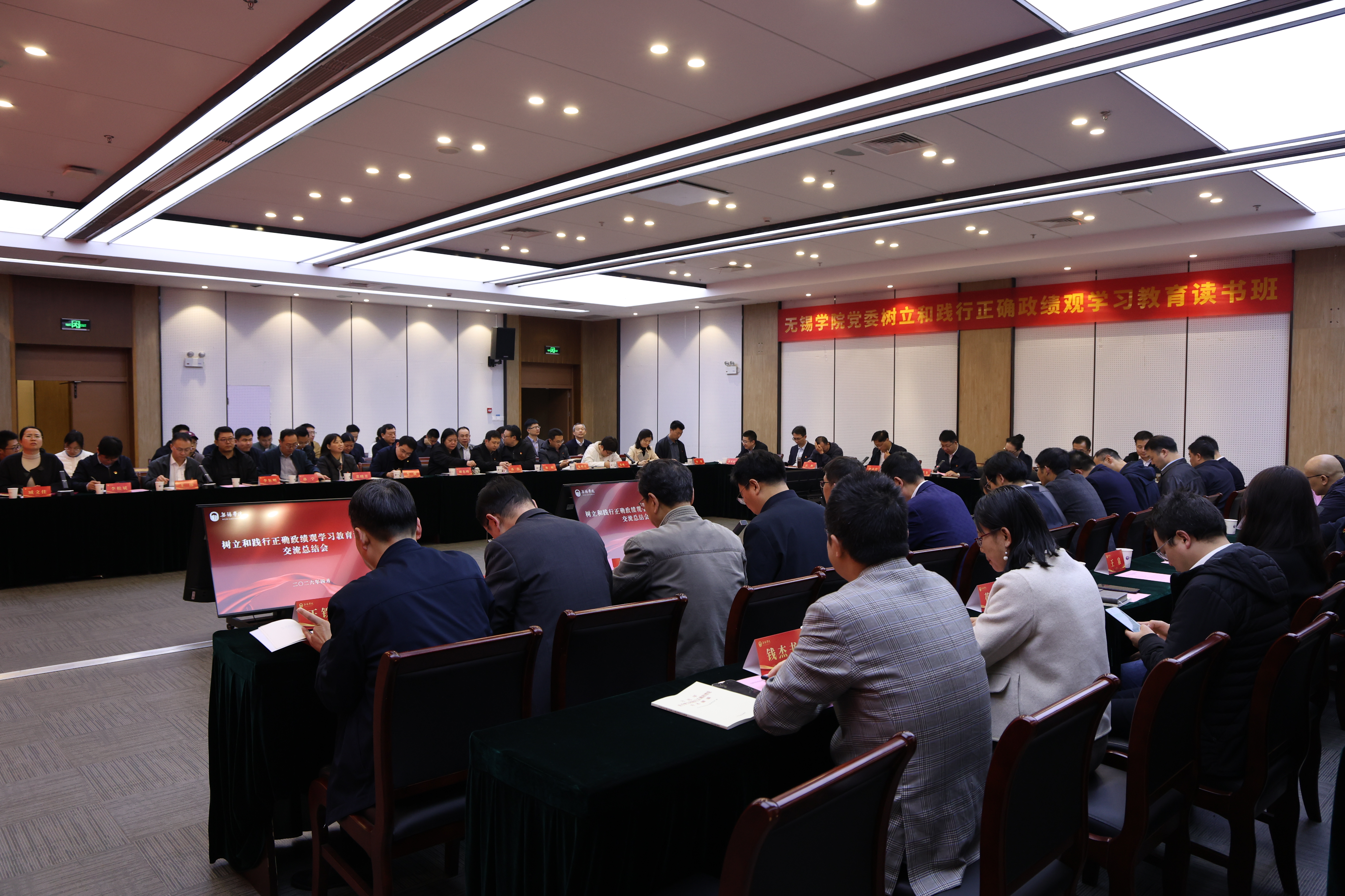 张永宏在总结讲话时强调,树立和践行正确政绩观是一项长期的政治任务。要在深学细悟上持续用力,把习近平总书记关于正确政绩观的重要论述作为案头卷、工具书,常学常新、常悟常进;在对标检视上持续用力,对照巡视反馈问题和师生期盼,深入查摆政绩观偏差,明确整改措施;在建章立制上持续用力,完善干部考核评价机制,让正确政绩观真正成为评价干部、推动工作的“指挥棒”;在开门教育上持续用力,广泛听取师生意见,让广大师生切实感受到学习教育带来的新变化、新成效。要把学习教育成果转化为服务地方发展、联系服务师生、科学决策、担当作为、廉洁从政的实际行动,凝心聚智、实干攻坚,奋力开创无锡学院高质量发展新局面。