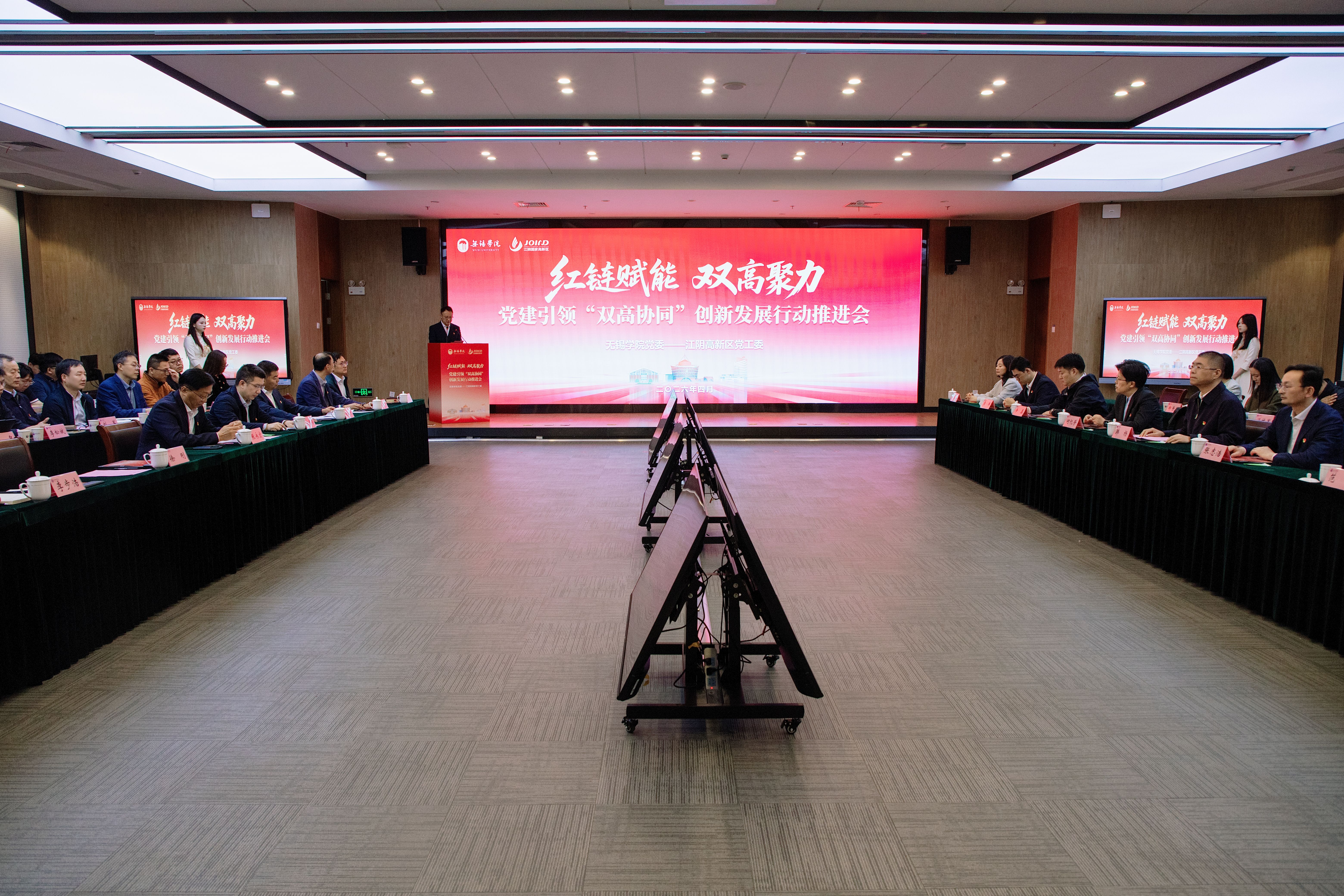 4月24日上午,党建引领“双高协同”创新发展行动推进会在我校隆重举行。本次活动以“红链赋能 双高聚力”为主题,聚焦以高质量党建引领校地高质量发展。校党委书记张永宏,党委常委、副校长徐军海,江阴市委常委、组织部部长韩杨出席会议。江阴高新区党工委领导、相关部门负责人、相关企业党员技术骨干,我校相关职能部门和二级学院主要负责人,科研团队党员骨干、教师党员代表等参加会议。会议由校党委常委、组织部部长、统战部部长徐刚主持。