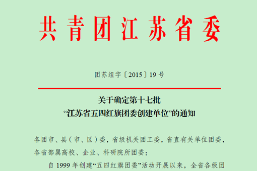 日前,共青团江苏省委发布《关于确定第十七批“江苏省五四红旗团委创建单位”的通知》团苏组字〔2015〕19号,我院团委获批为创建单位。