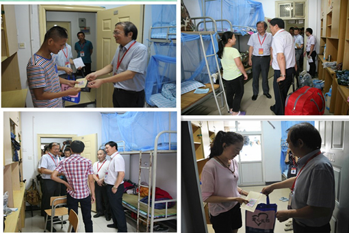 领导们先后走访了学生公寓2、4、6、11、12、14栋部分宿舍。每到一处,都亲切地和新生交流,详细了解同学们的情况;仔细查看寝室的各种设施是否完善;勉励新生好好学习、自信自强,争取考研;管副书记亲手将慰问金、电话卡和生活用品包送到同学们手中,叮嘱他们要和同学们处好关系,如果遇到困难要及时与辅导员及学院进行沟通。