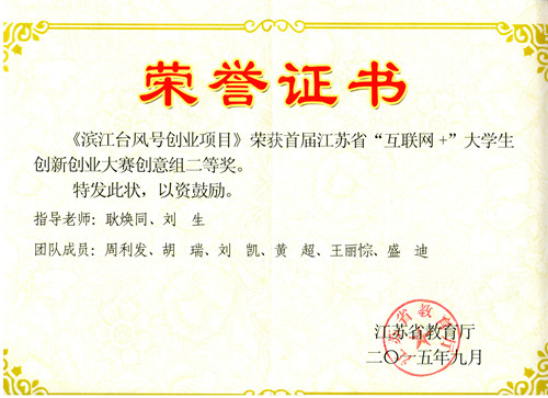 9月14日,由省教育厅、省委宣传部、省发改委、省科技厅、省人社厅、省商务厅、团省委等部门联合主办,南京大学和南京高新技术产业开发区承办的首届江苏省“互联网+”创新创业大赛决赛在南京落幕。我院副院长耿焕同教授、计算机系主任刘生副教授指导《滨江台风号》创业团队喜获大赛二等奖。