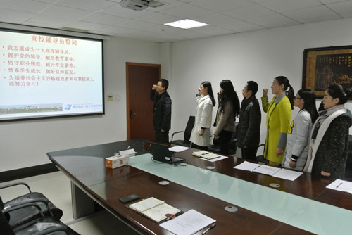 辅导员工作是神圣的,意义非凡,责任重大。全体新入职辅导员在学院党委副书记兼副院长葛昕明的带领下庄严宣誓,志愿成为一名高校辅导员,为培养社会主义合格建设者和可靠接班人而努力奋斗。新入职辅导员铿锵有力的宣誓彰显了他们对于这份职业的热情奉献与执着追求,他们纷纷表示,今后一定将“拥护党的领导、献身教育事业、恪守职业规范、提升专业素养、情系学生成长、做好良师益友”的誓言转化为工作中的具体行动。