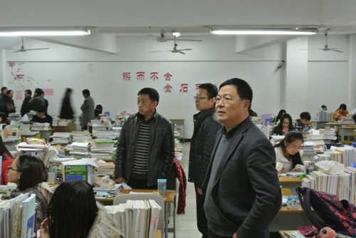 学院领导首先来到了综合楼下的考研专用教室,看望了正积极备战12月份全国硕士研究生考试的2012级考研学子。气氛安静的考研专用教室里,“锲而不舍 金石可镂”的标语尤为醒目;考研学子们奋笔疾书,为人生的梦想挥洒汗水。看到同学们只争分秒、认真备考的复习状态,学院领导深感欣慰。院领导们并与12计算机2班的刘威、12物流2班的高伯涵等同学做了交流,关切地询问他们复习情况,叮嘱他们天气比较寒冷,要注意保暖和营养,提醒他们,最后的冲刺阶段,更要注意复习和休息的相结合,勉励他们要有坚持到底的恒心,要保持良好心态和学习节奏,要沉着应考,发挥出最佳水平,取得佳绩,力争实现考研梦想。