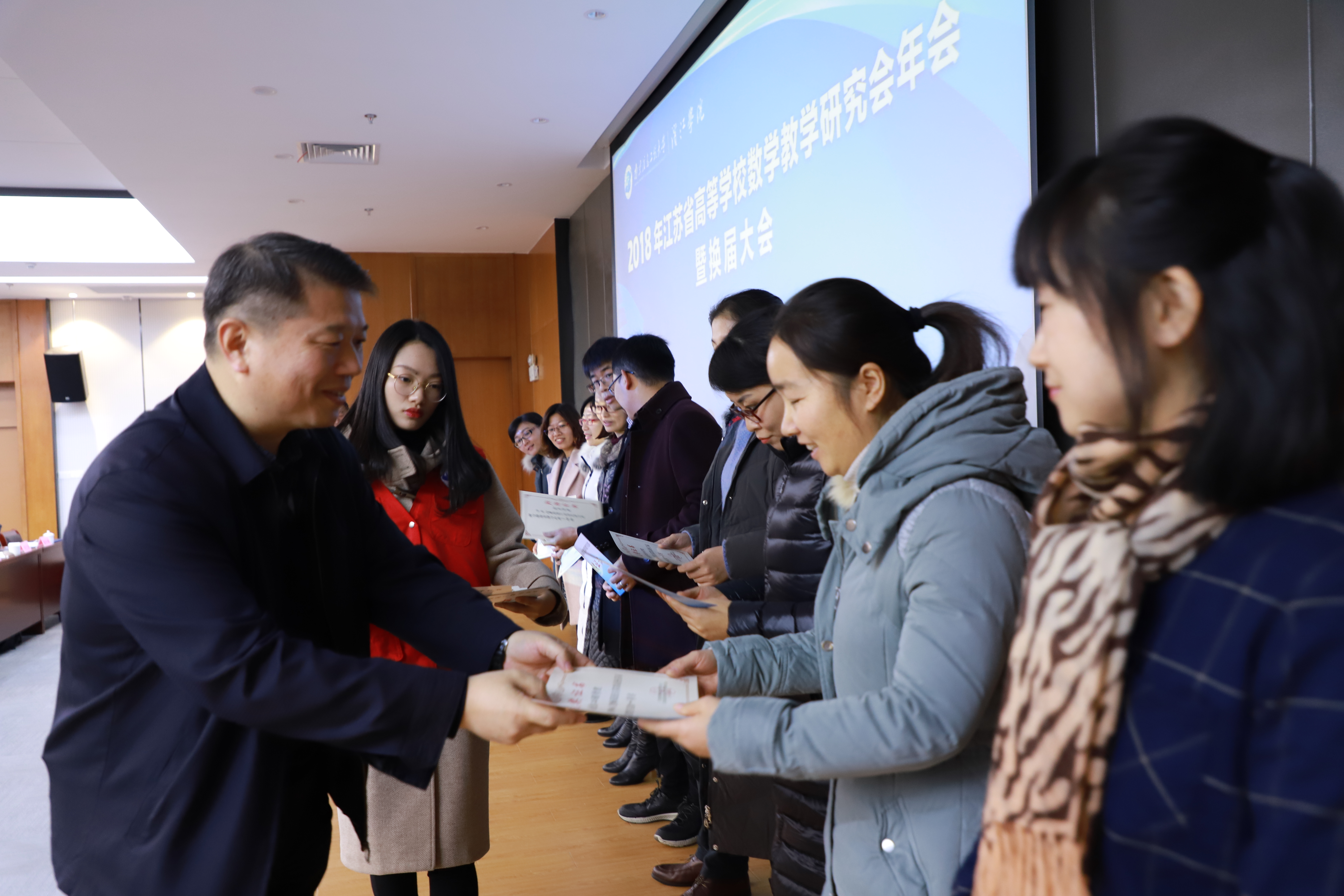蔡华调研员代表江苏省教育厅对会议的召开表示热烈祝贺。他指出,高等院校的教育应以精课为主,充分融合其高阶性,创新性,先进性,探究性与个性化于课堂,从而加强学生的学习兴趣与实践能力。随后,蔡华调研员还为江苏省高等院校首届数学微课程教学竞赛一等奖获奖人员进行了颁奖。