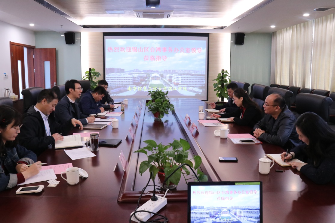 3月19日上午,无锡市锡山区台湾事务办公室主任朱萍、副主任陆志斌等一行四人来我院指导工作。院长曹广喜、组织人事处处长张灿龙、教务处处长朱恩涛、国际教育学院负责人王勇出席座谈会。