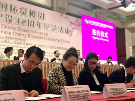 3月26日下午,院长曹广喜、中教国际教育交流中心项目主任王华、国际教育学院负责人王勇应邀参加由无锡市人民对外友好协会主办的2019无锡国际赏樱周暨中日樱花友谊林建设32周年纪念活动。作为无锡市国际化大型品牌外事交流活动,该活动吸引了来自24个国家的代表参加。