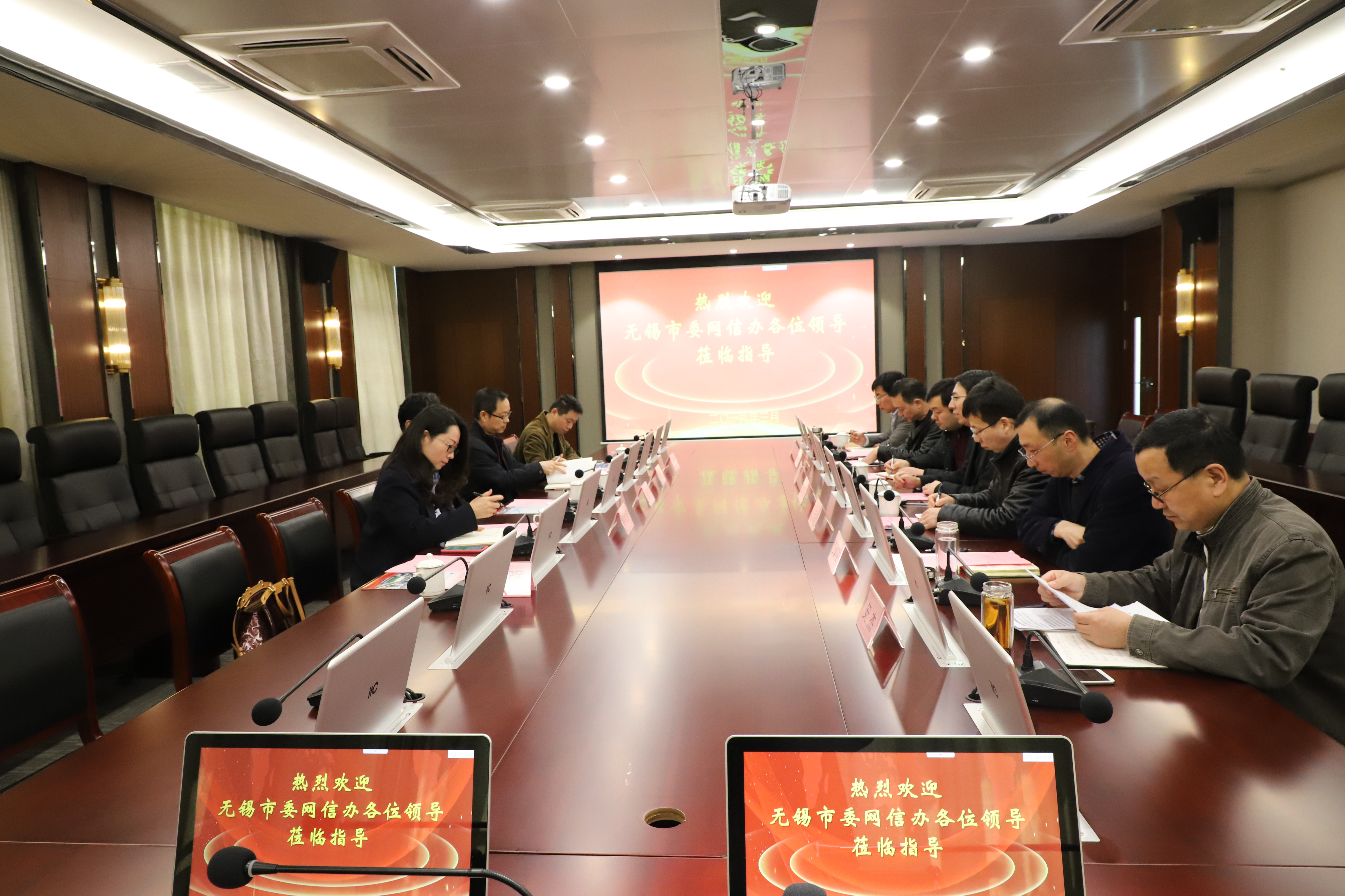会后,无锡市委网信办领导一行参观行政楼大厅沙盘、科创楼实训中心、物联网工程学院微机房、图文信息中心机房、桃园餐厅等建筑和设施。