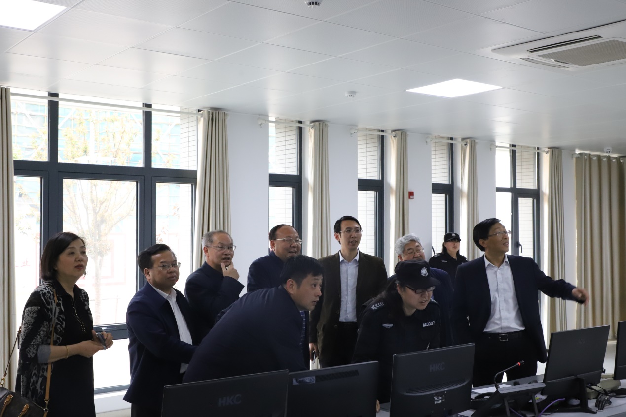 会后,张永宏副校长带领专家参观了行政楼大厅沙盘、滨江大礼堂、物理实验室、多媒体教室、消防监控中心桃园运动场、学生公寓等建筑和设施,实地考察了校园环境。