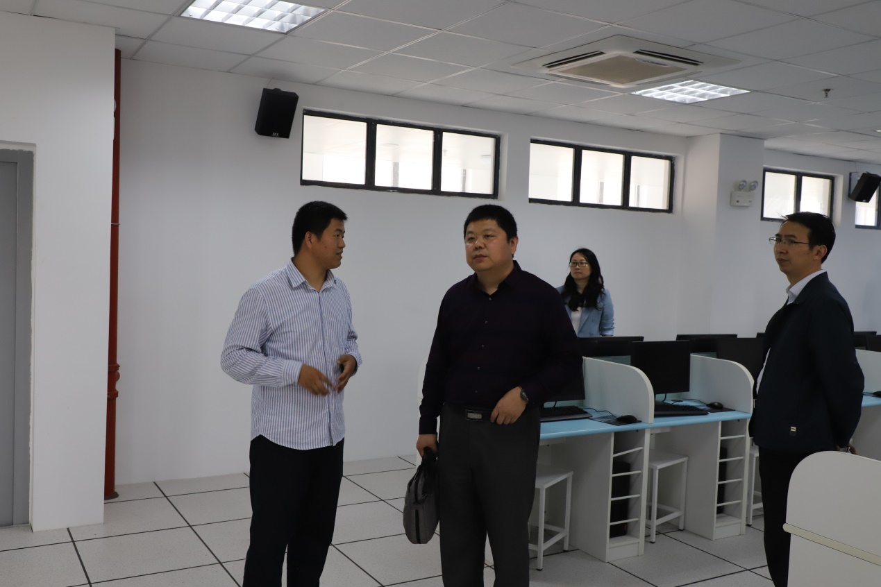 会后,孙迎强一行参观了行政楼大厅沙盘、科创楼、微机室、网络信息中心机房,实地考察了校园环境。