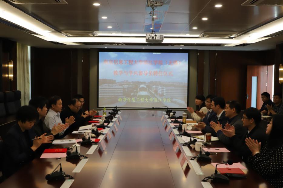5月10日上午,我院迁址无锡后首届教学与学风督导员聘任仪式在无锡校区行政楼525会议室举行。院长曹广喜、教务处处长朱恩涛、各二级学院负责人及学院聘任的教学与学风督导员参加聘任仪式,仪式由朱恩涛主持。
