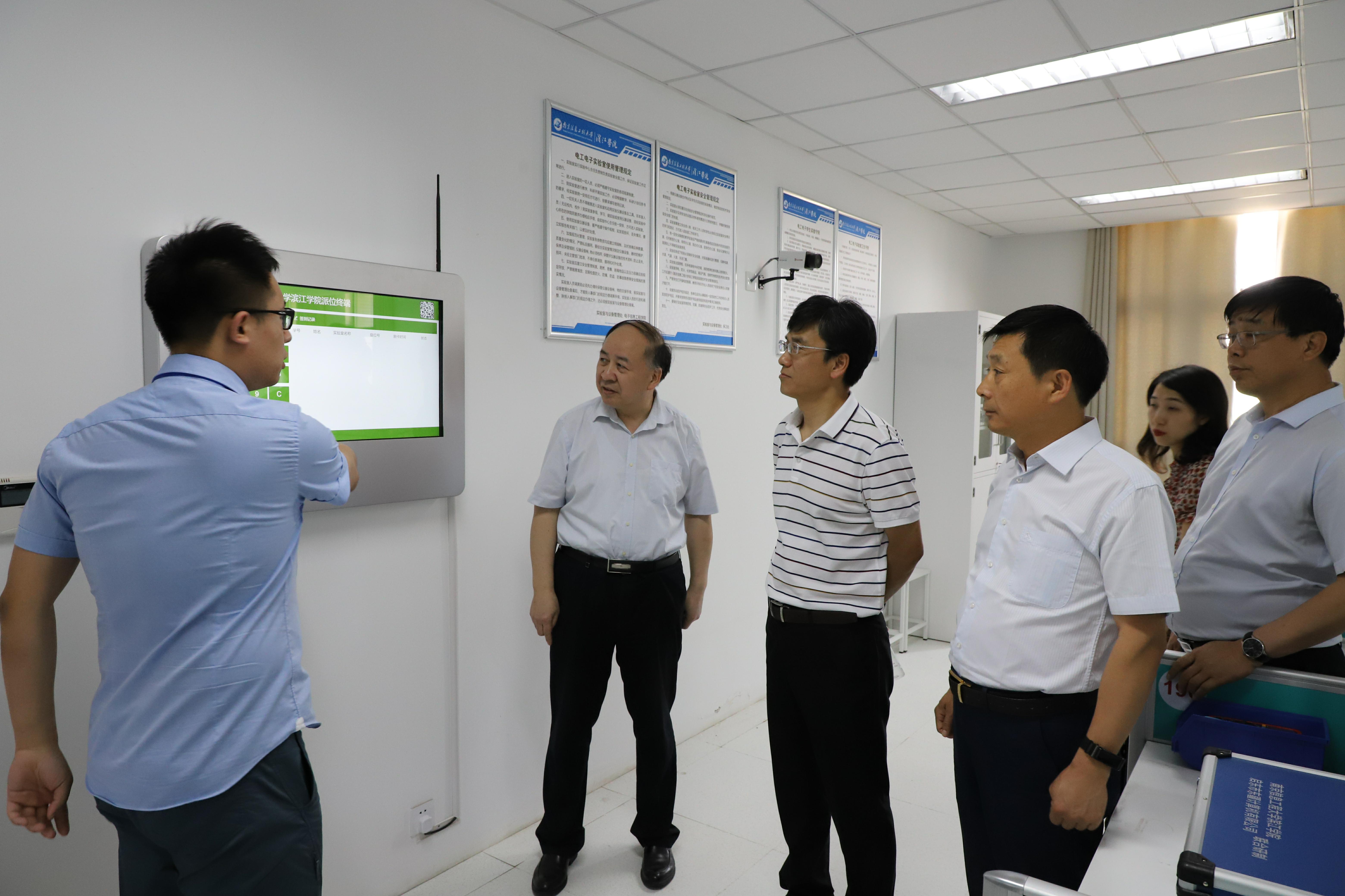 会后,梁卫国副校长一行参观了行政楼大厅沙盘,滨江大礼堂、多媒体实验室、电工实验室、消防监控中心、桃园运动场、学生公寓、桃园餐厅等建筑和设施。
