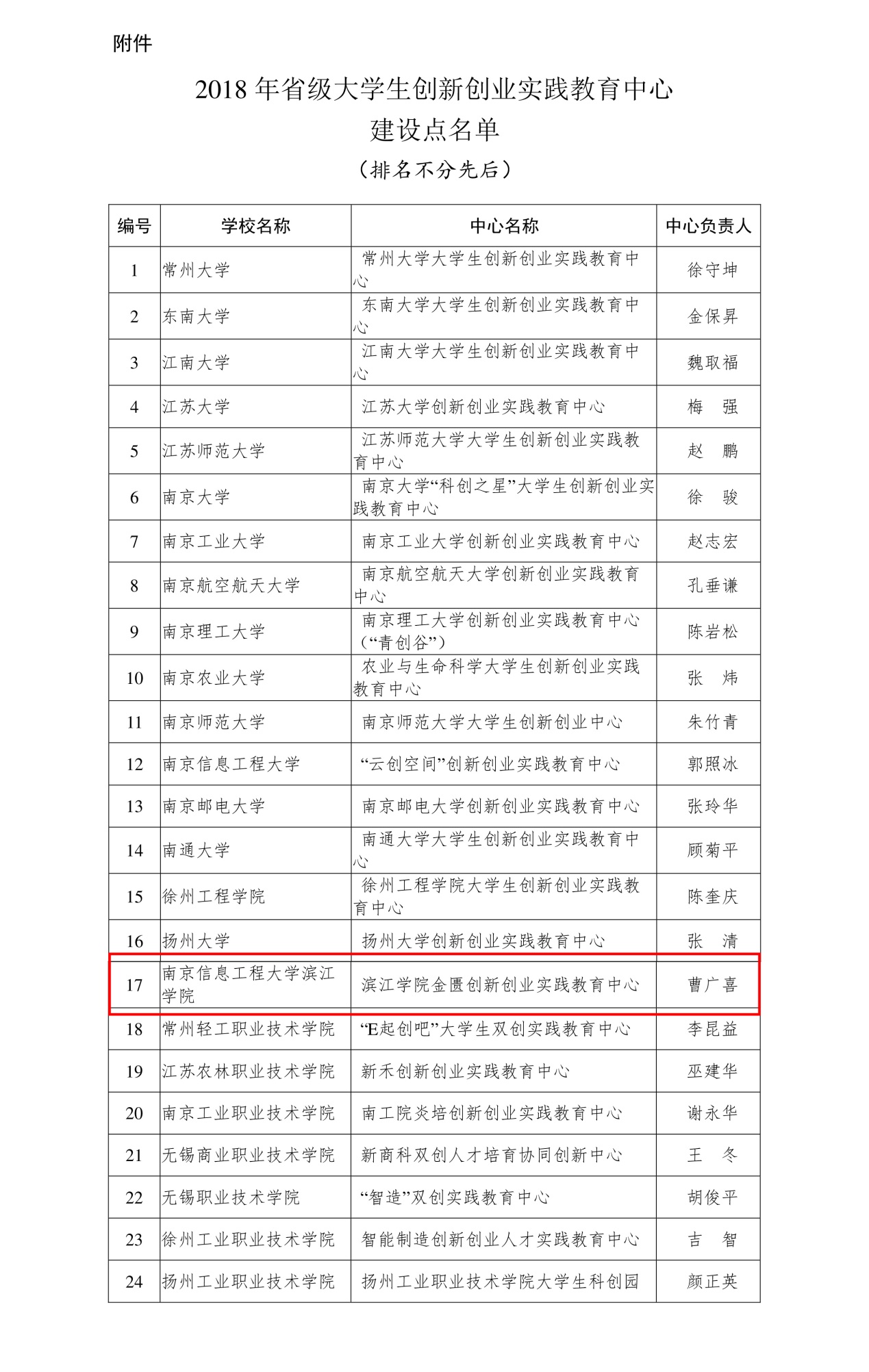 据悉,本次遴选工作由省教育厅组织、依据《省教育厅办公室关于开展2018年省级大学生创新创业实践教育中心申报工作的通知》(苏教办高函〔2018〕44号)精神开展,在高校自主申报基础上,经专家评审、公示和省教育厅审核及公示无异议等程序,共遴选出24所高校的24个中心为省级大学生创新创业实践教育中心建设点。