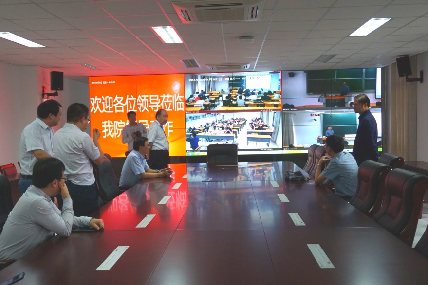 分组检查后,院领导在思泉楼可视化录播中心远程观看了各教室内教学实况,并对学院整体上课情况进行集中考察指导。院领导对新学期教学工作给予了充分肯定,并要求各相关单位坚持以生为本,切实围绕教学等工作做好服务和保障,确保新学期教学工作平稳有序。