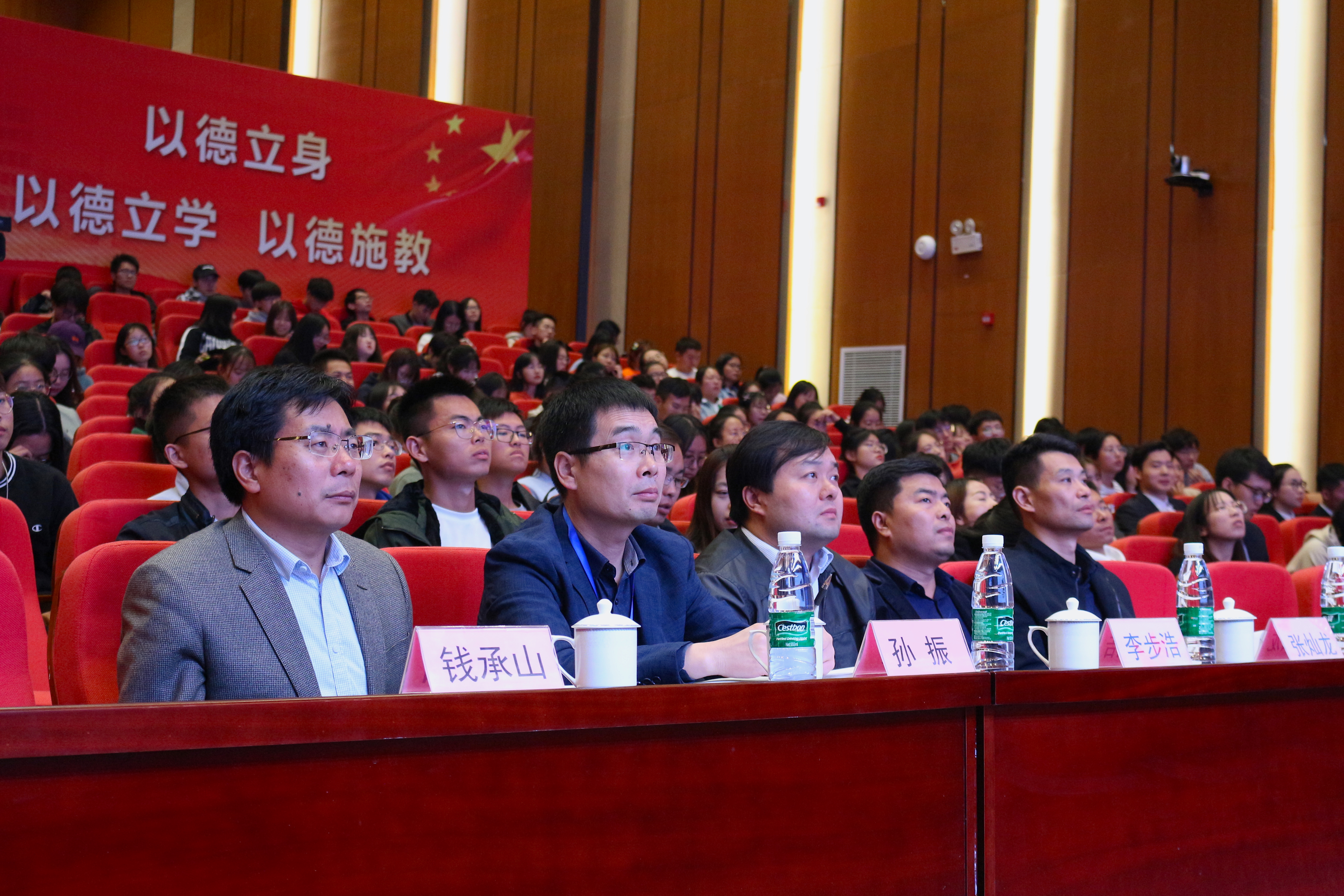 10月29日晚,滨江学院无锡校区2019年学校特等奖学金差额评审公开展示会在滨江大礼堂二楼剧场举行。院纪委书记李步浩,党委副书记、副院长张灿龙,党政办主任李磊,教务处处长钱承山,财务处、审计处处长孙振等担任评委,各二级学院负责人、辅导员和300余名学生现场观摩了展示会。