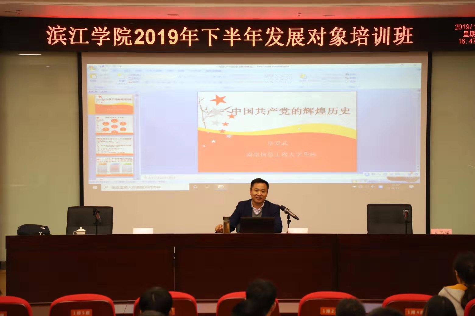 11月13日,培训班第二讲,校本部岳爱武教授为学员们作了《中国共产党简史》的报告,岳教授生动讲述了中国共产党从成立到改革开放新时代的光辉历程,以及无数能仁志士浴血奋战,自强不息,为民族独立、人民解放、国家富强抒写了可歌可泣的壮丽史诗。通过岳教授的讲解,学员们深深体会到如今幸福生活的来之不易,立志做一名勇于担当、乐于奉献的优秀共产党员。