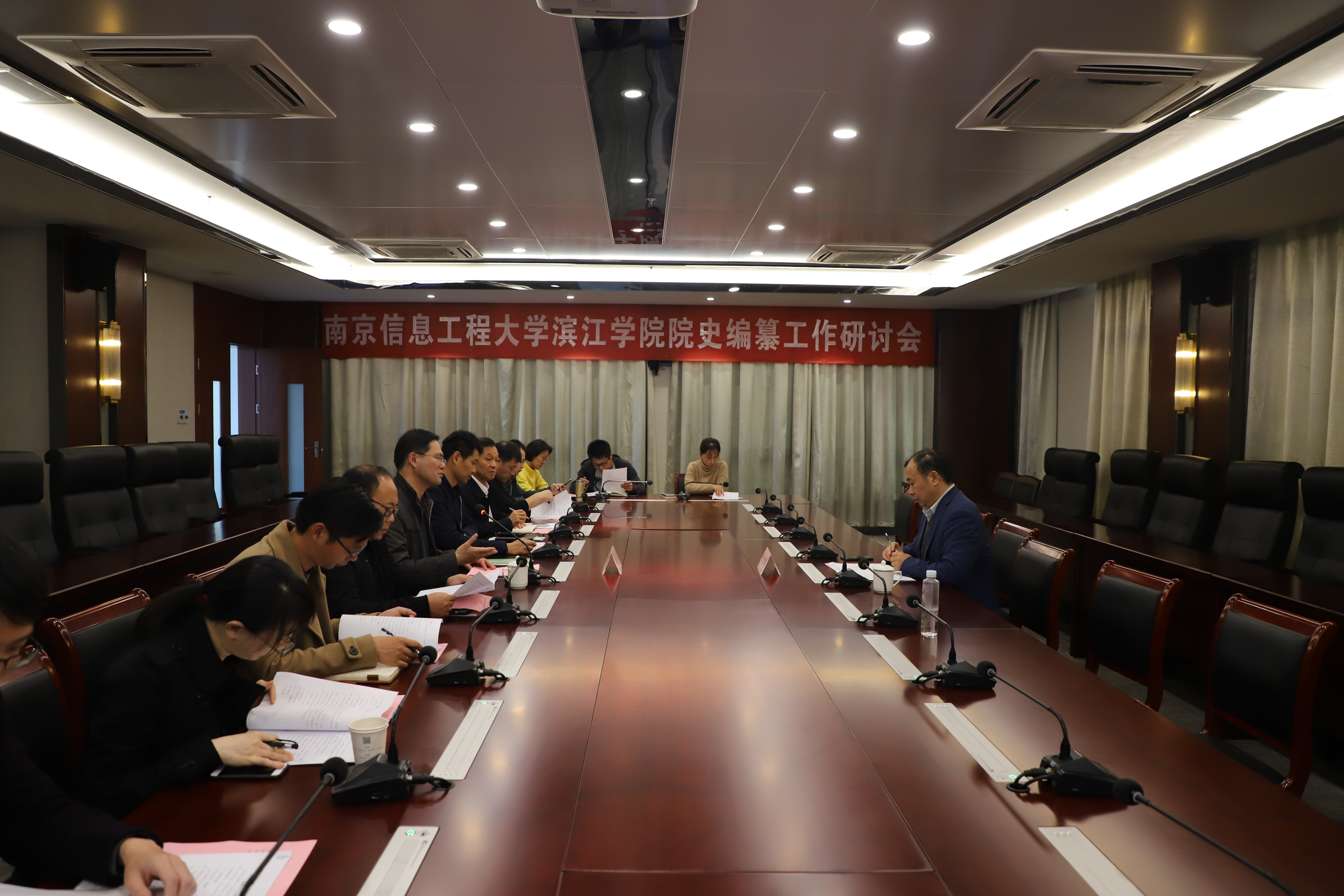 吴立保主任结合自己主持南信大校史编纂工作的丰富经验,就滨江学院院史编纂的资料筹备、框架设计、沟通协调等环节进行了系统全面的指导。他表示,院史编纂工作任务艰巨、责任重大,需要每一位课题组成员怀着奉献精神投身其中。