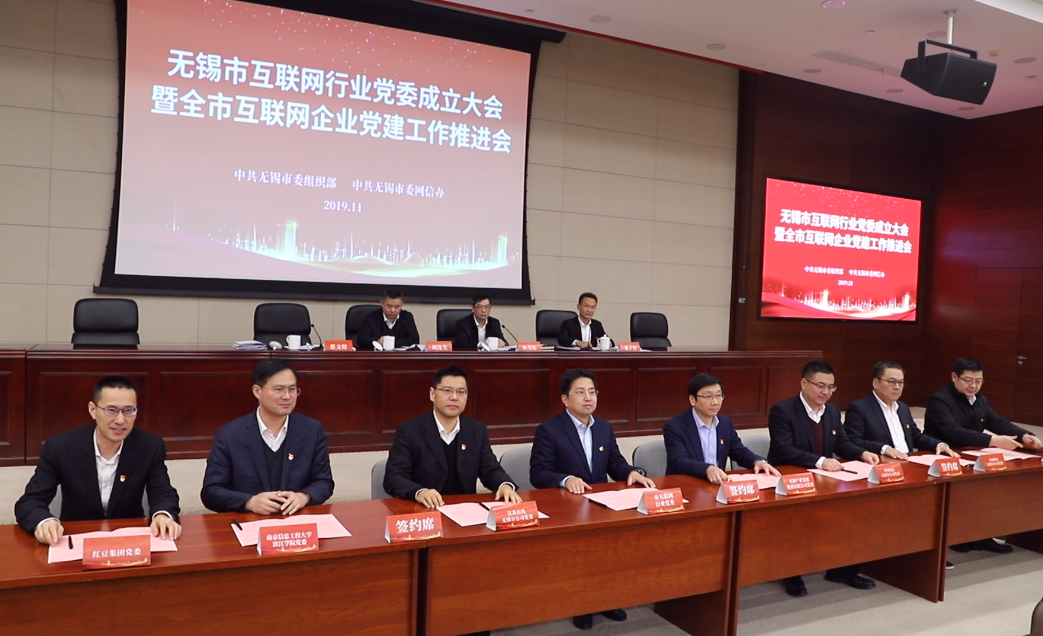11月28日,我院党委书记左同宇代表学院党委参加了无锡市互联网行业党委成立大会暨全市互联网企业党建工作推进会。会上,学院党委与无锡市互联网行业党委、中国电信无锡分公司党委、中国移动无锡分公司党委、中国联通无锡分公司党委、江苏有线无锡分公司、无锡产业发展集团党委、红豆集团党委等7家党组织共同签订了市互联网企业e路领航党建联盟协议。
