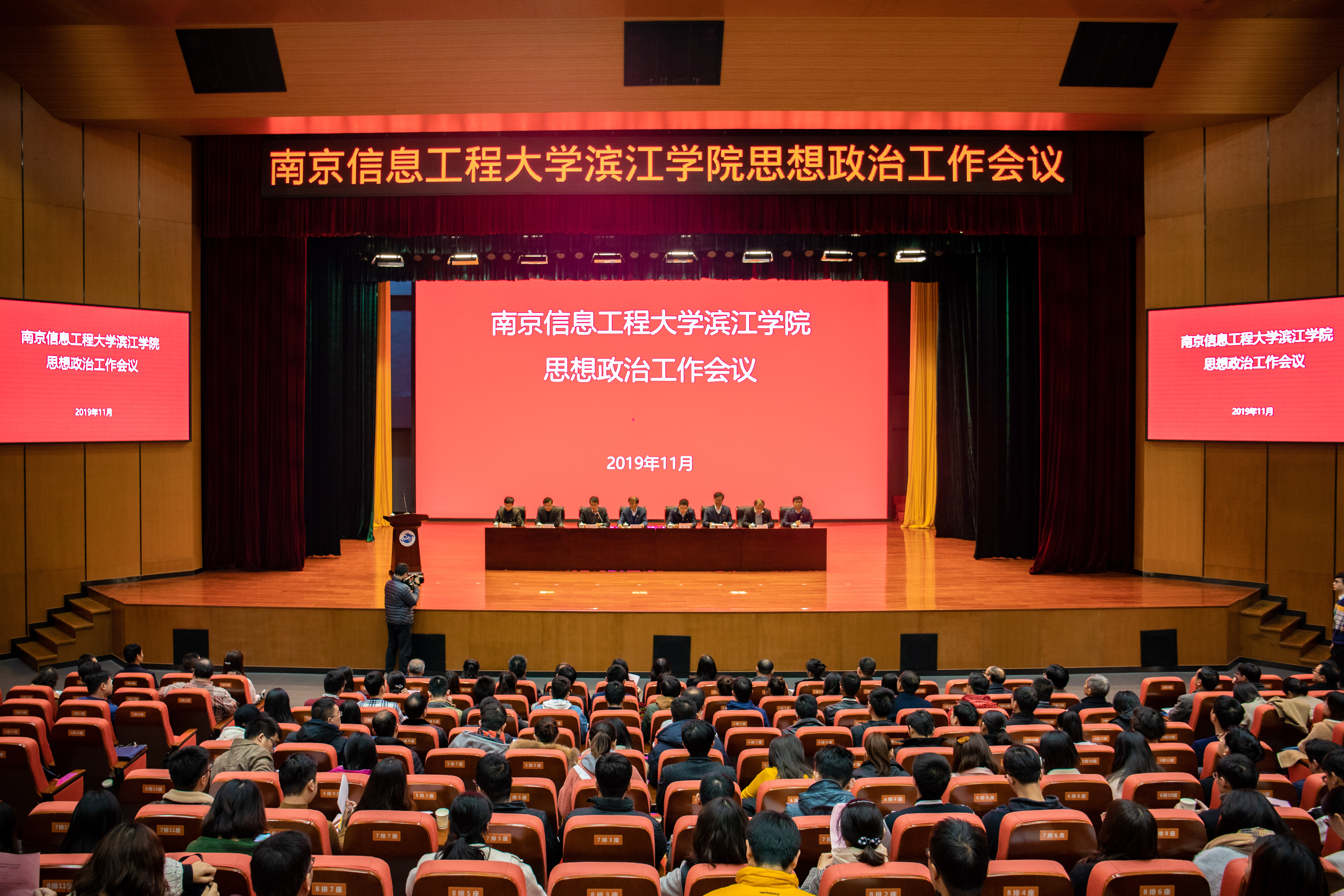 11月27日下午,南京信息工程大学滨江学院思想政治工作会议在滨江大礼堂二楼报告厅召开。南京信息工程大学党委书记管兆勇,南京信息工程大学党委校长办公室主任郑伟,滨江学院院长曹广喜,院党委书记左同宇,副院长、无锡研究生院院长杨再强,副院长包云轩、齐运锋,副书记、副院长张灿龙出席会议,无锡校区教职员工共200余人参加会议。会议由院长曹广喜主持。