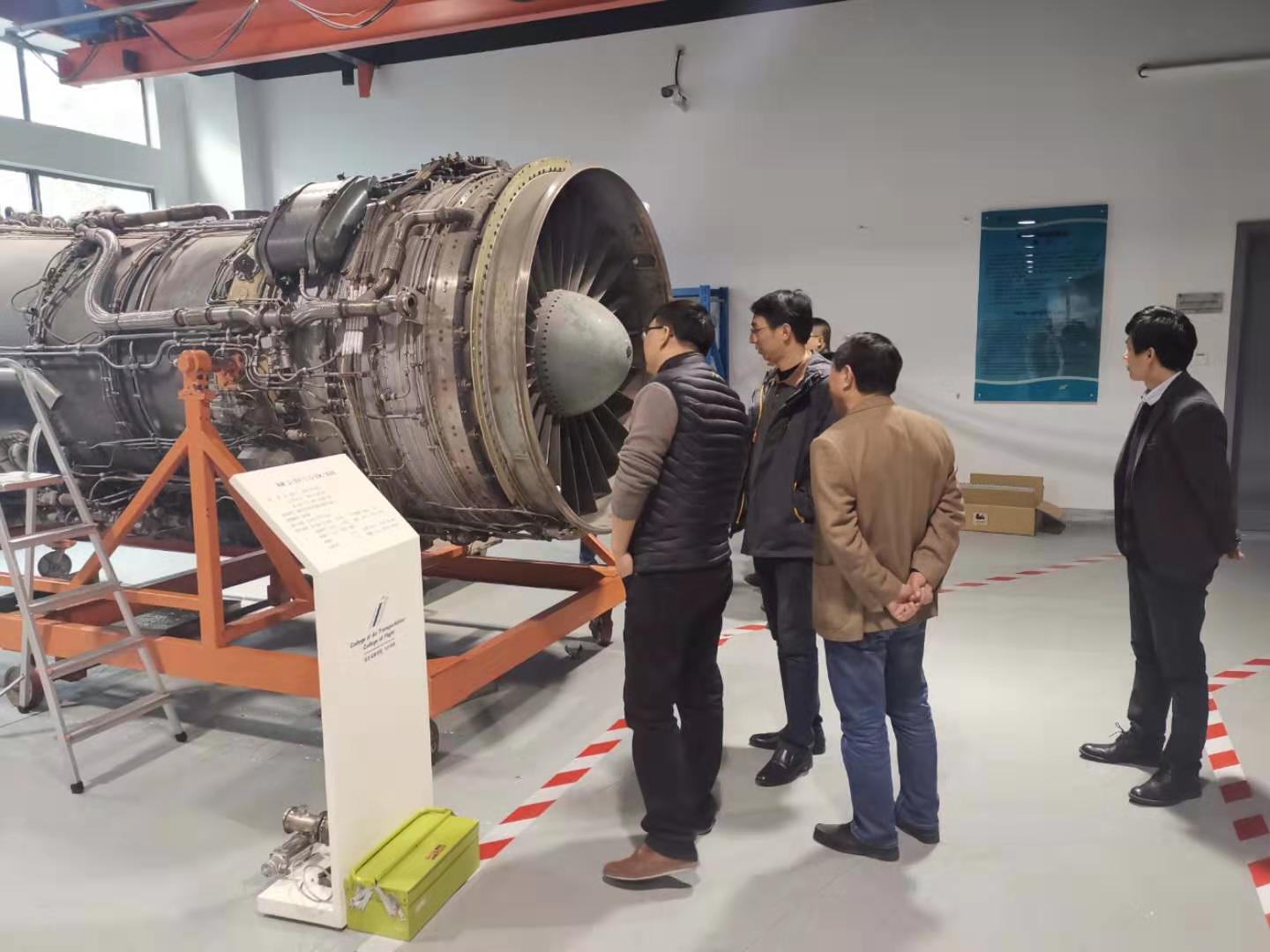 调研组一行还参观了中韩虚拟现实综合实验中心、轨道交通轮轨滚动接触磨损及疲劳实验室、发动机拆装实验室、乘务应急训练实验室以及波音737-800模拟机项目。
