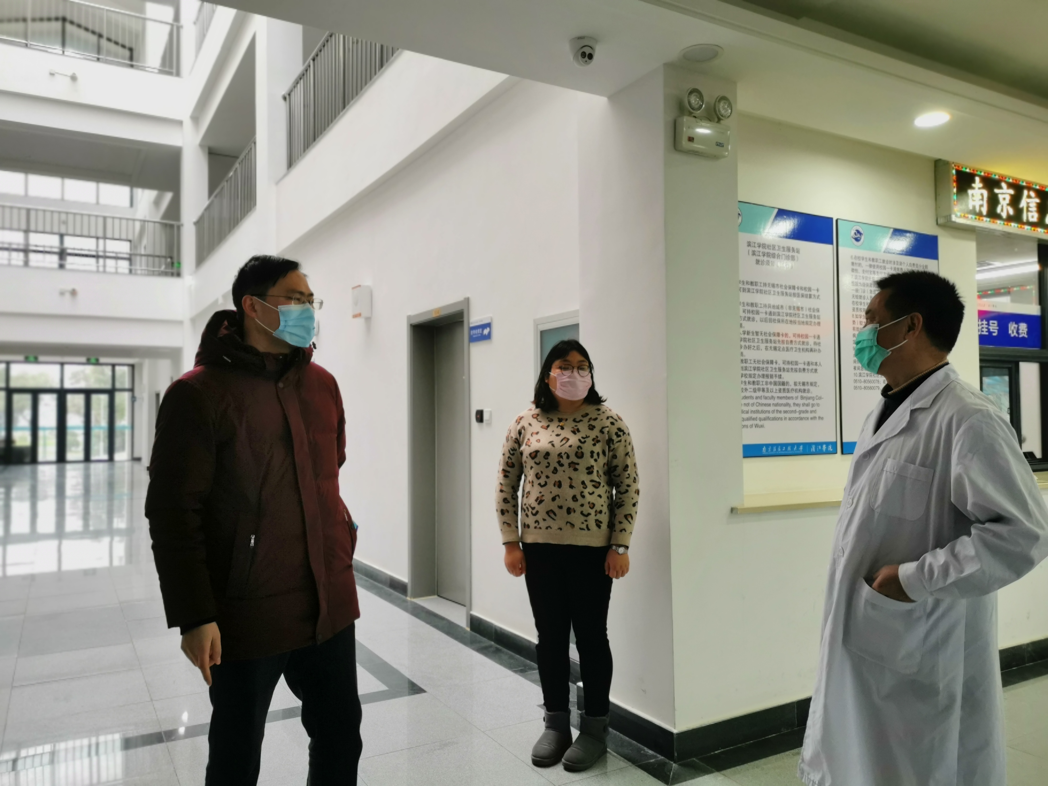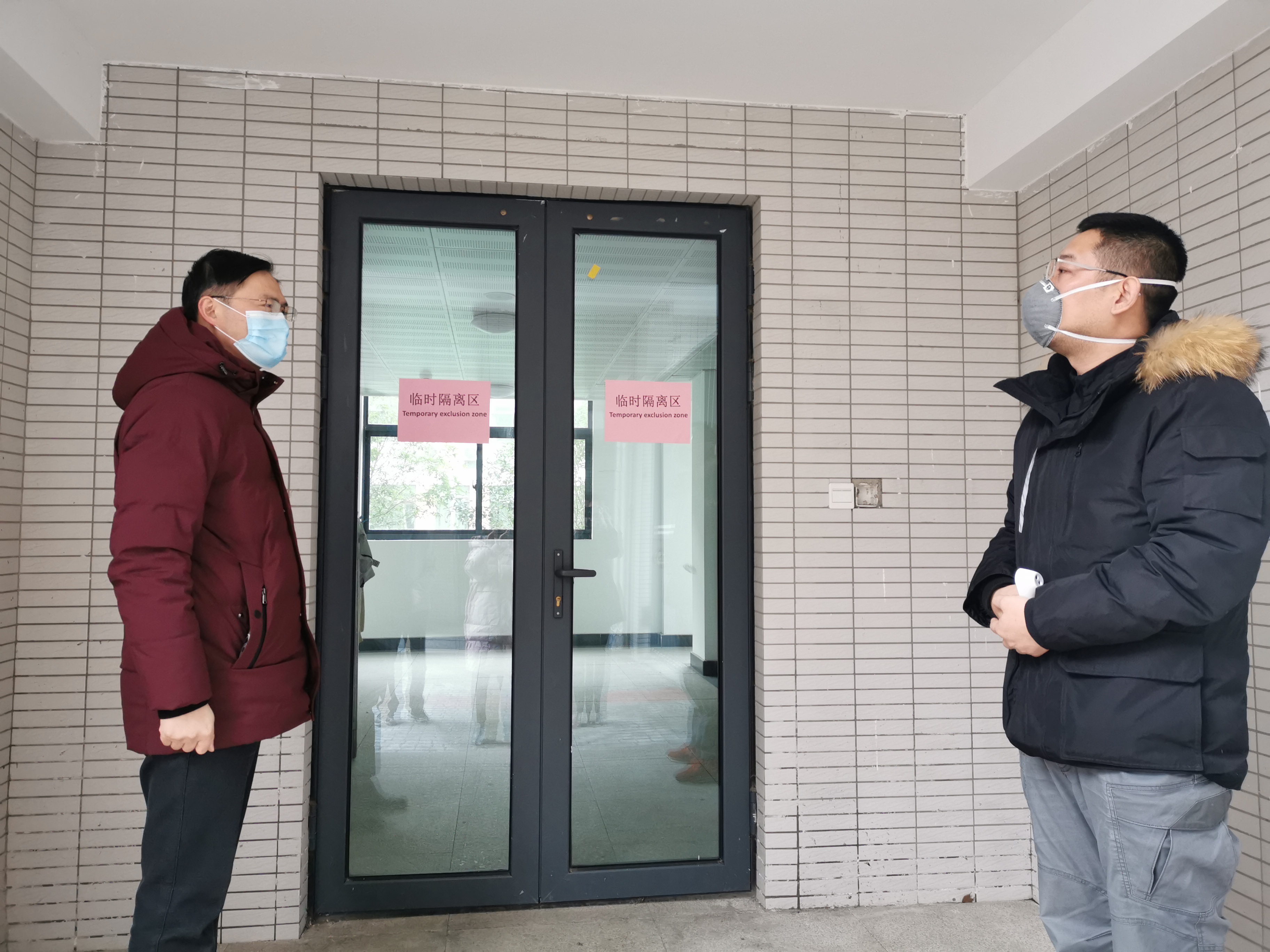 1月28日下午,院党委书记左同宇带领党政办、保卫处、学工处、国教院、总务处等相关单位负责人和工作人员,现场检查指导学院新型冠状病毒感染的肺炎疫情防控工作,看望慰问了坚守岗位战斗在疫情防控工作一线的教职员工。