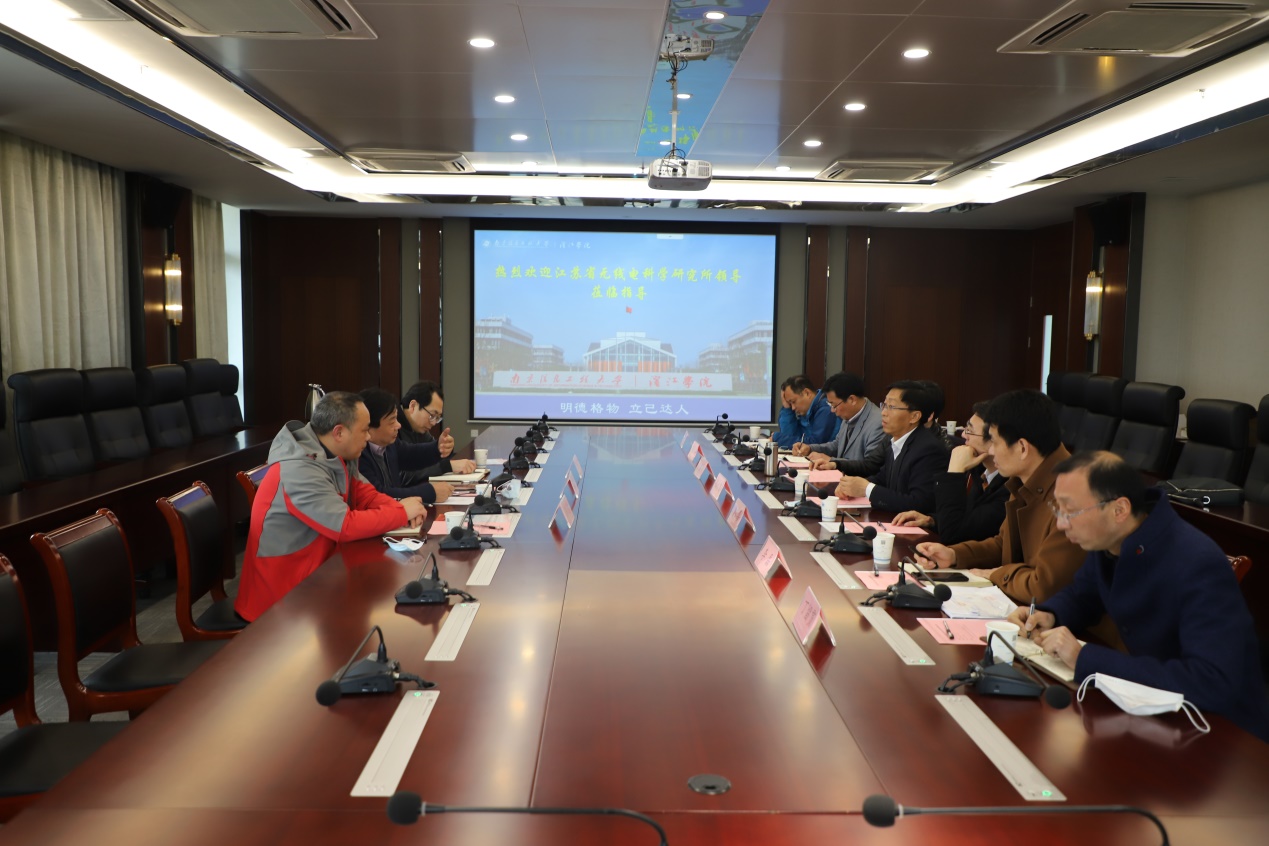 4月3日下午,江苏省无线电科学研究所总经理孙立新、副总经理席建辉等一行三人来我院调研,南京信息工程大学副校长张永宏、滨江学院院长曹广喜,相关职能部门负责人及二级学院院长参加座谈会。座谈会由曹广喜院长主持。