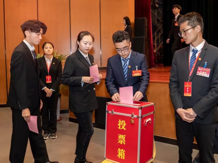 根据选举办法,大会选举产生了滨江学院新一届团委委员和学生会主席团成员。与会代表审议通过了《南京信息工程大学滨江学院学生会章程(修订)》。在圆满完成各项议程任务后,大会在激昂的《国际歌》中落下帷幕。