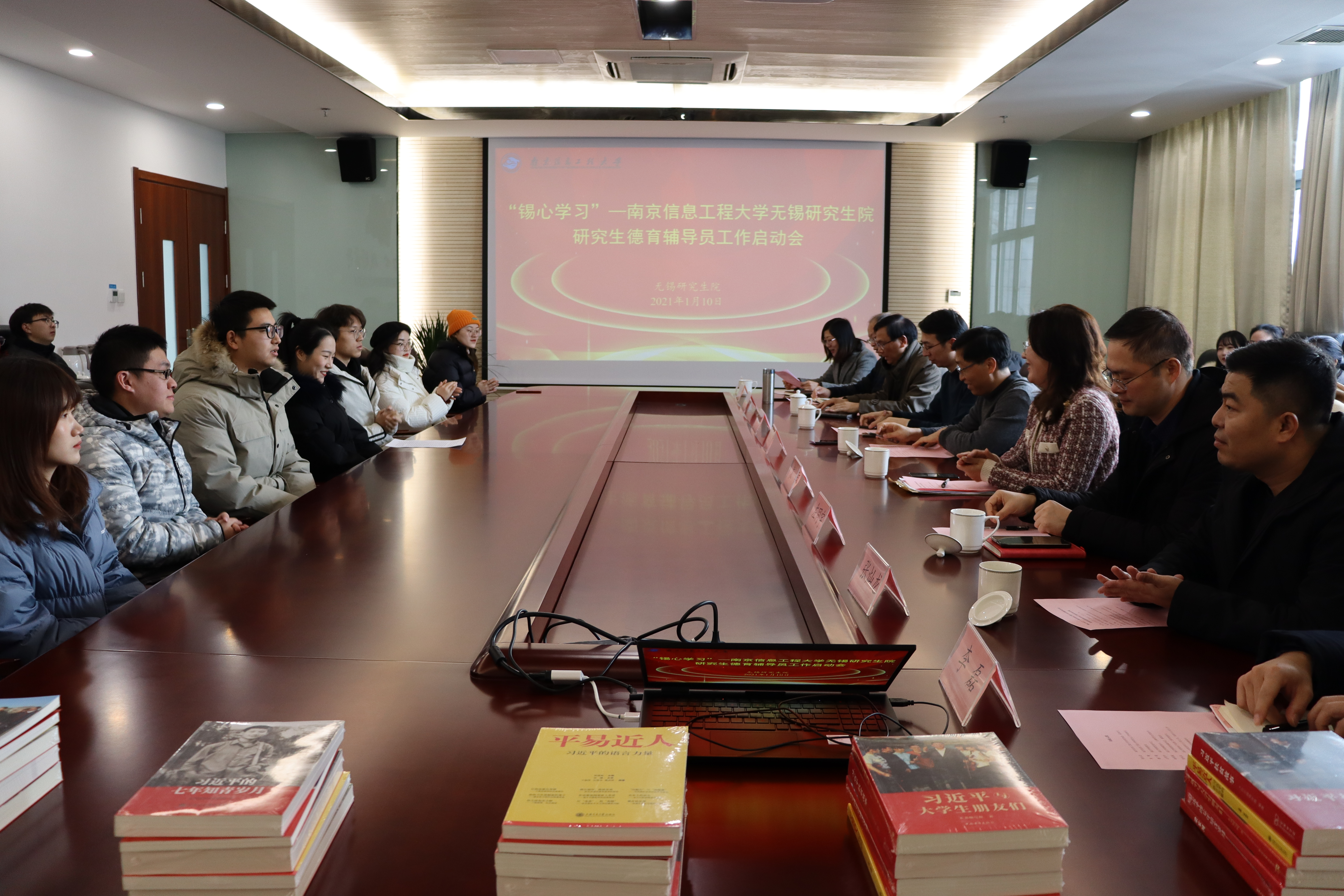 研究生德育工作是研究生教育的重要内容,是研究生人才培养的重要环节。为做好研究生思想引领、学习生活和职业生涯发展等方面的指导,学校党委常委、副校长张永宏教授受聘担任无锡研究生院2020级研究生德育辅导员,滨江学院党委宣传部部长程艳丽担任助理德育辅导员。1月10日,南京信息工程大学无锡研究生院研究生德育辅导员工作启动会在学院行政楼501会议室顺利召开。南京信息工程大学党委常委、副校长张永宏,研究生工作部部长袁敏,滨江学院院长曹广喜,党委书记左同宇,副院长、无锡研究生院院长杨再强,党委副书记、副院长张灿龙,电子信息工程学院院长郭业才,党政办公室主任、保密办公室主任李磊,党委宣传部部长程艳丽,无锡研究生院全体工作人员以及研究生代表25人出席本次会议。会议由程艳丽部长主持。