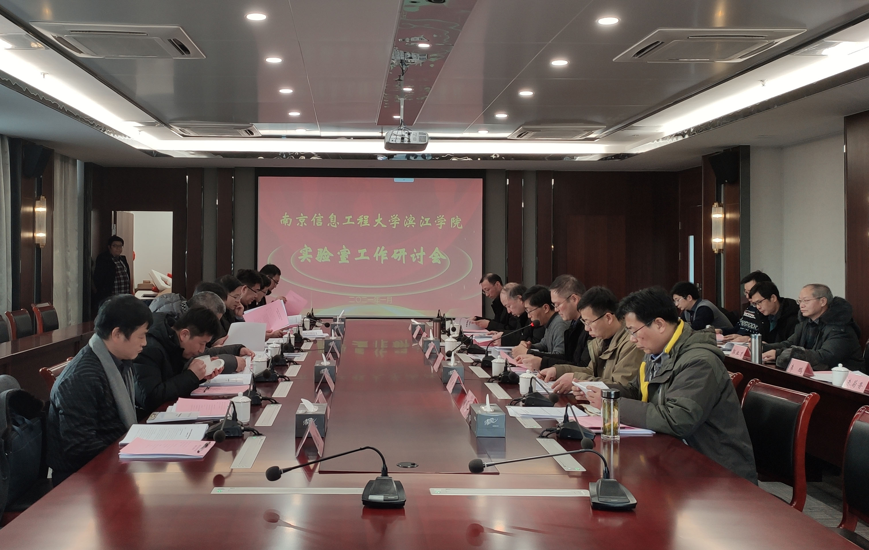参会人员首先观看了滨江学院宣传片,随后由我院实验室与设备管理处处长丁留贯对学院实验室总体情况进行了介绍。张永宏副校长对我院目前的实验室硬件设施建设给予了高度评价,也指出存在整体空间布局相对分散化、实验室利用效率不高等方面的不足,提出体系化设计的结构布局思路和“三区联动”构想。他表示,要把《南京信息工程大学关于校本部、滨江学院共享设备资源的实施办法》落到实处,推进实验室资源共享,提升实验室资源对人才培养的有力支撑,并对共享工作的具体落实给出了建议。会上,张永宏副校长还就研究生教学、创新能力培养及实验室规划建设提出了新的拓展思路,强调要发挥无锡地方产业优势,扩展外部资源,实现校企共建,通过深入产教融合,提高学生的综合创新实践能力。