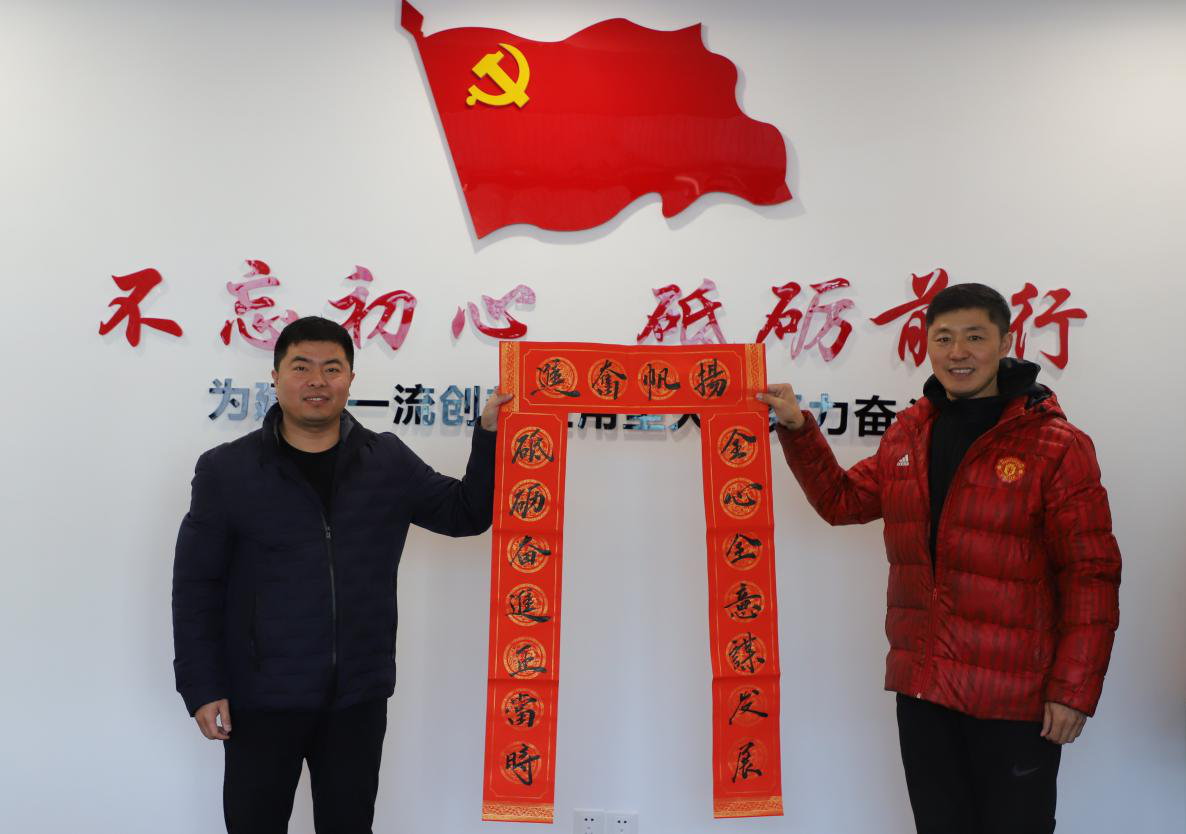 送春联活动现场暖意融融。喜庆的春联既有国家发展的美好愿景——“梦翼飞天圆国梦,风潮卷地荡春风”,也有文明家风的真实写照——“唯诚唯信行世事,克俭克勤践家风”,还有对教育管理工作者的深深期许——“心系教育清似水,勤勉从政洁如冰”。全体领导干部不时驻足欣赏、诵读品味,现场洋溢着热烈的节日气氛。