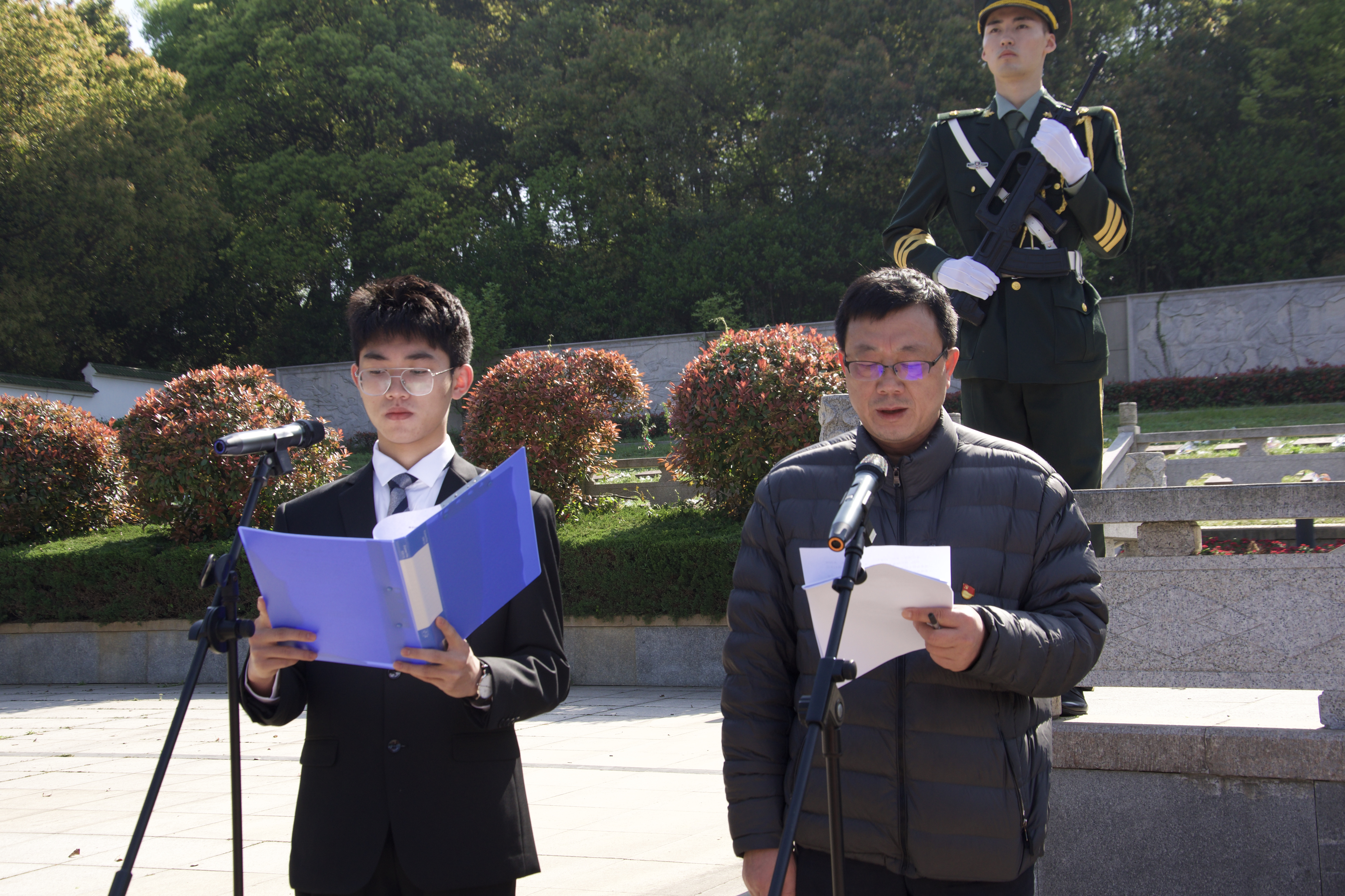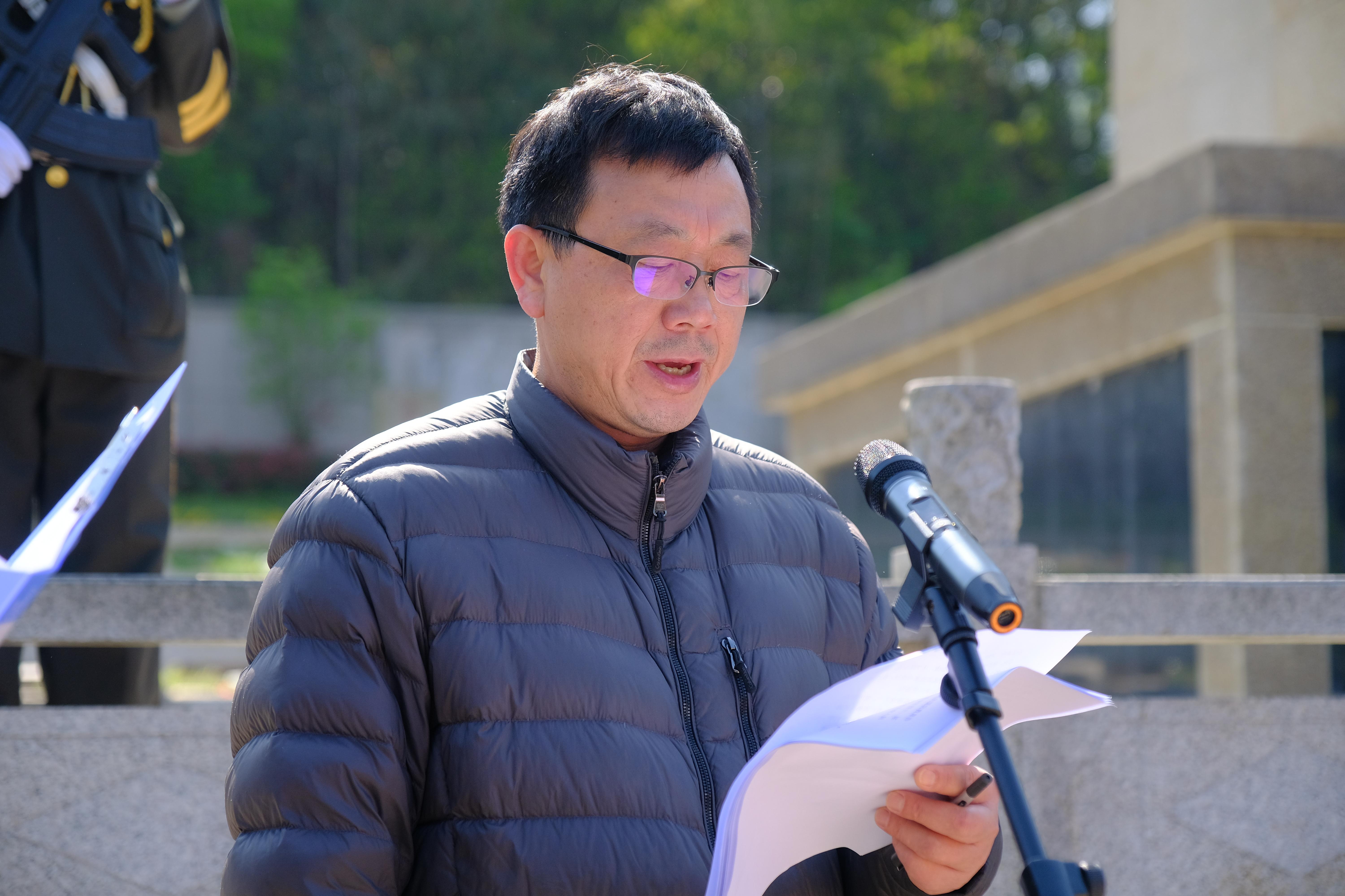 学生代表林泽昊宣读祭文《仰先烈之遗光,铸浩然之气》。“前辈即去,我辈当出。青冥浩荡,雏鹰不惧;云程发轫,万里可期。今我中国之青年当砥砺自强,艰苦奋斗,谨守本心,勿忘民族复兴之大任。”先烈遗志,薪火相传。号召同学们心怀感恩,继承和发扬英烈精神,与时代同呼吸,与祖国共命运。在祖国最需要的地方,书写无愧于时代、无愧于历史的壮丽篇章。