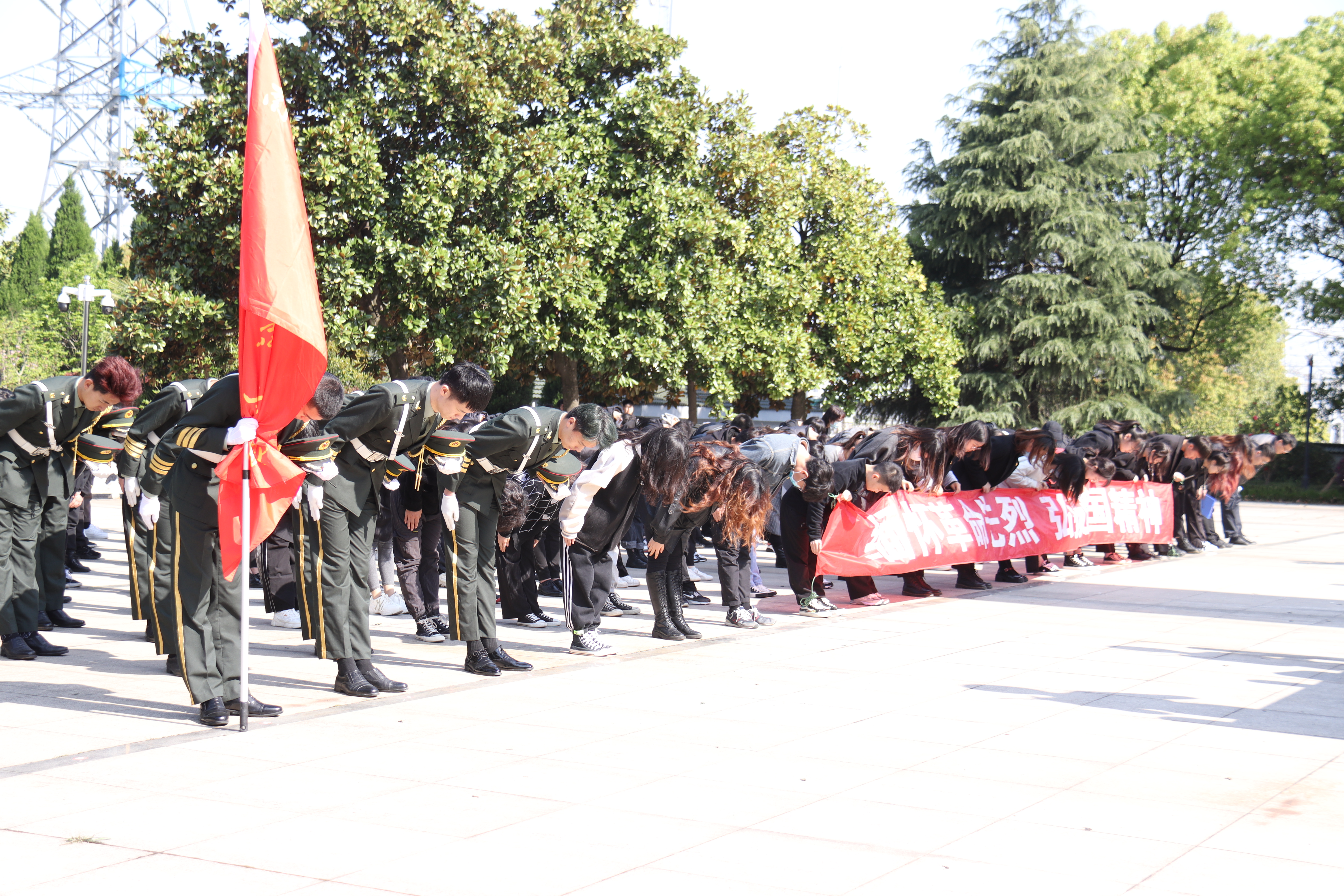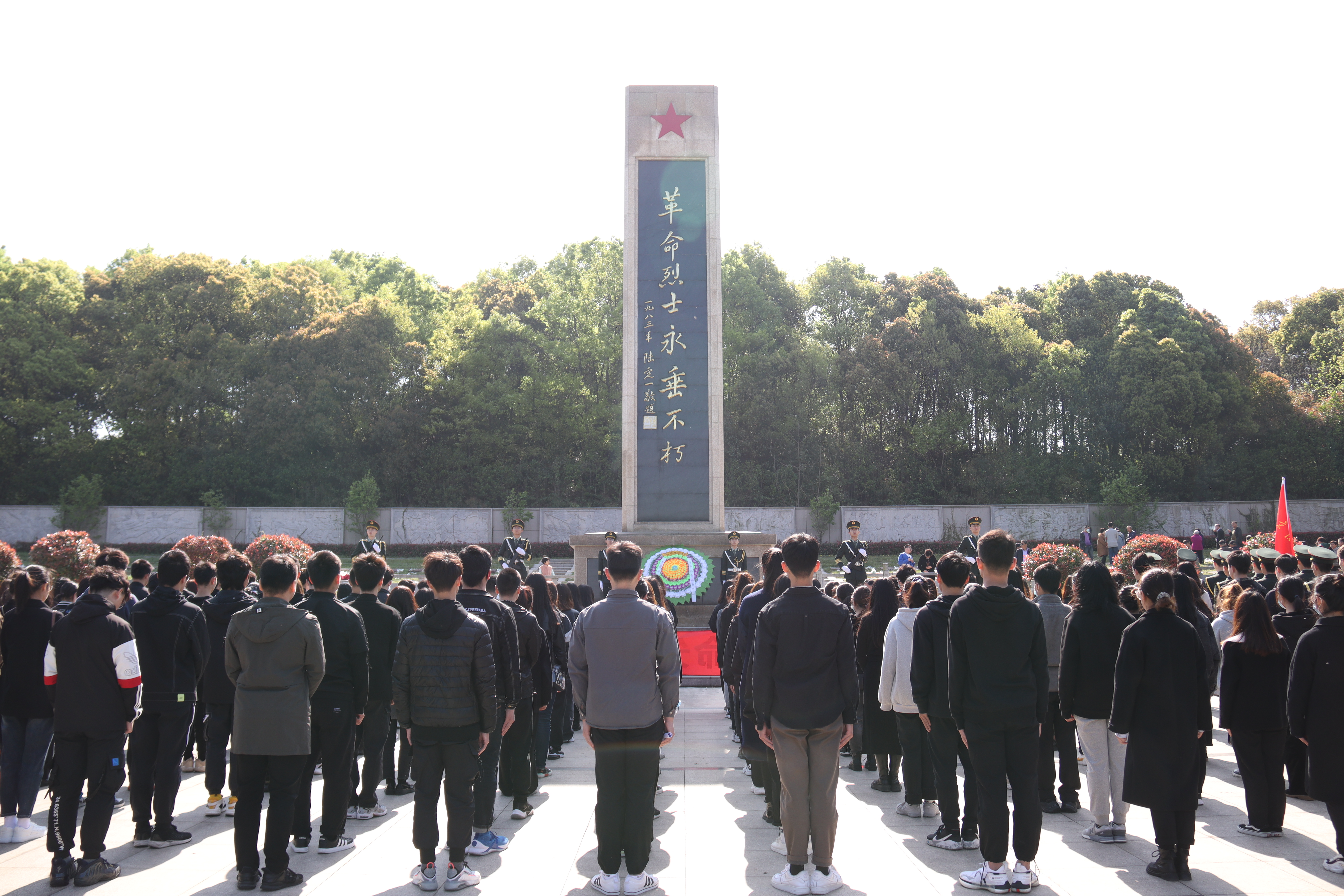 青山有幸埋忠骨,松柏垂头慰英魂。在清明节之际,学院将党史学习教育与革命传统教育相结合,让红色基因、革命薪火代代传承,从党史中汲取前行的智慧和力量。参加今天祭扫活动的有学院武装部领导、学生工作处领导、在院辅导员和保卫处的工作人员;有学生党员82名,在院学生60人;国旗班队员37名,国防教育协会成员15人,共计200余人。