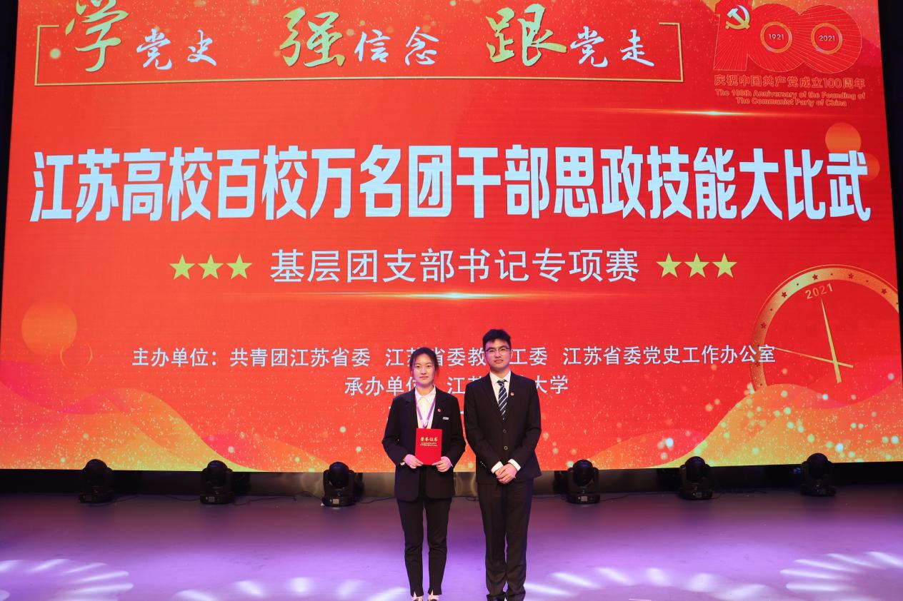 为庆祝中国共产党成立100周年,共青团江苏省委联合江苏省委教育工委、江苏省委党史工作办公室共同主办江苏高校百校万名团干部思政技能大比武基层团支部书记专项赛。4月25日,基层团支部书记专项赛决赛在江苏科技大学落下帷幕。我院电子信息工程学院沈田雨同学荣获三等奖。