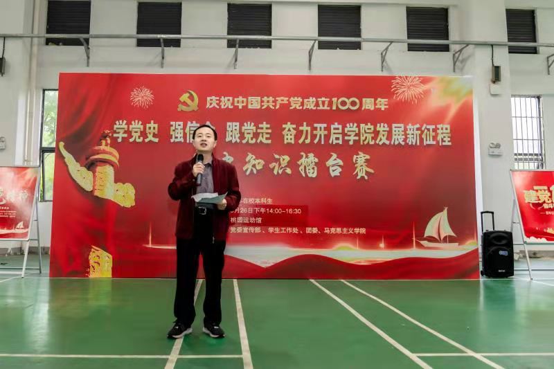 为庆祝中国共产党成立一百周年,贯彻落实习近平总书记在党史学习教育动员大会上的重要指示精神,引导广大青年学生在学习党史的过程中加强党性修养、坚定理想信念,我院于5月26日下午在桃园运动馆举行“学党史 强信念 跟党走 奋力开启学院发展新征程”党史知识擂台赛。本次活动由院党委宣传部、学生工作处、团委、马克思主义学院共同举办。全院近千名同学参与了本次活动。