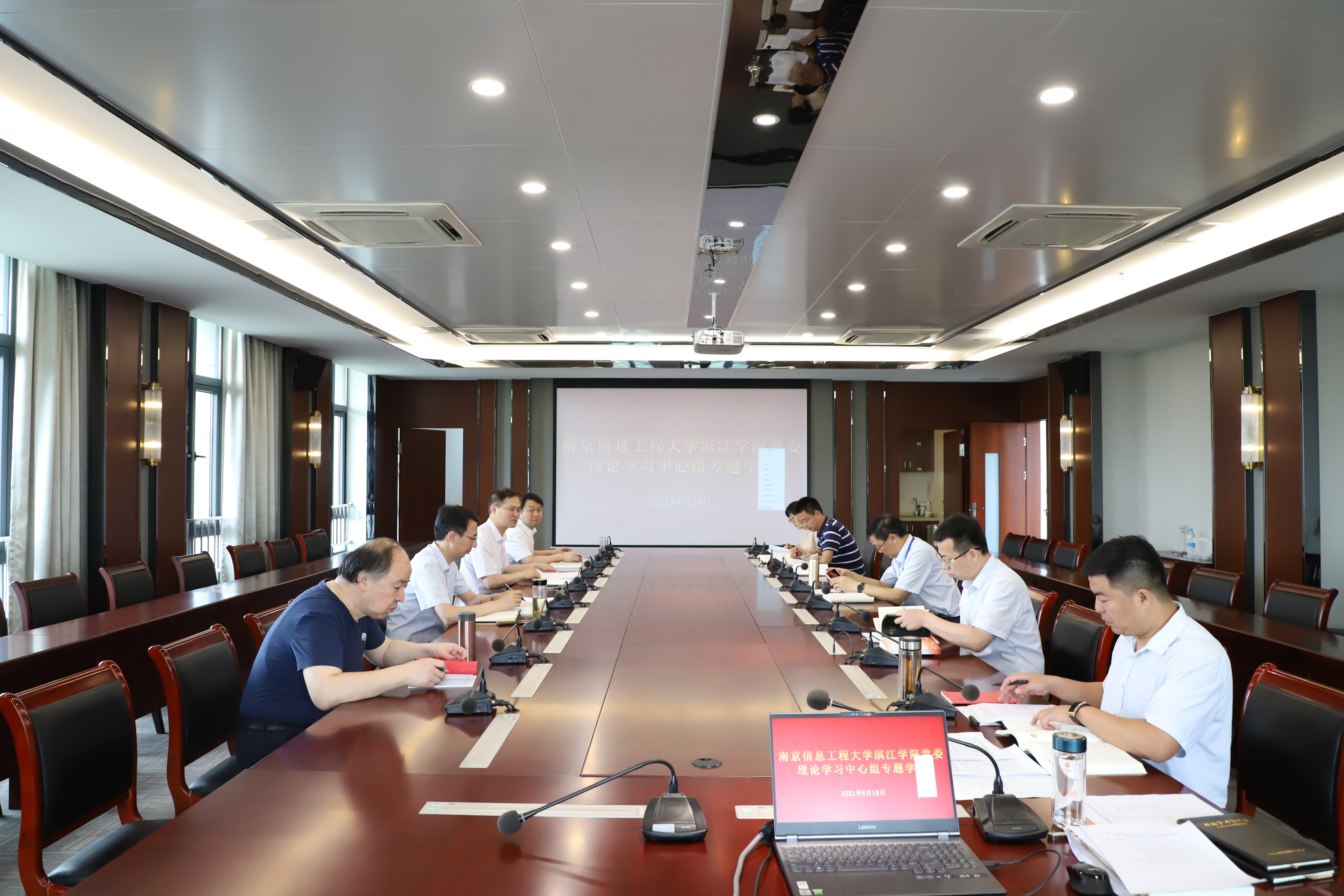 6月16日上午,滨江学院党委理论学习中心组在行政楼525会议室召开理论学习会议,学院党政领导班子成员参加学习,会议由院党委书记左同宇主持。