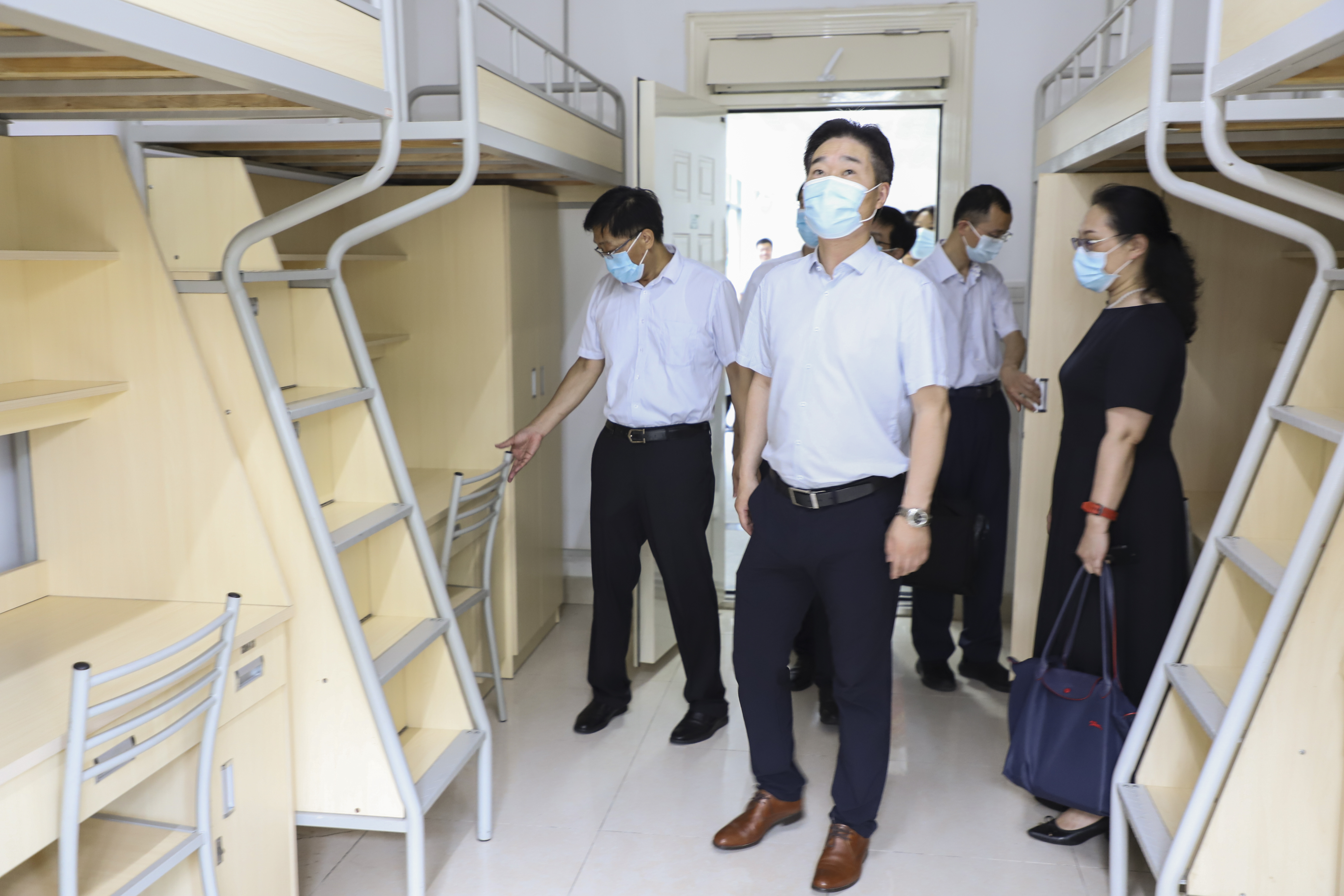 7月29日中午,无锡学院党委书记杨建新、院长张永宏,副书记匡辉、副院长梁惠娥、纪委书记王友明、副院长曹广喜、副院长胡剑凌等校领导,以及相关职能部门负责同志先后来到行政楼、校园西门、宿舍、食堂等场所,向暑期坚守岗位的一线工作人员表示慰问,了解防疫工作落实情况,并为他们送上防暑降温慰问品。