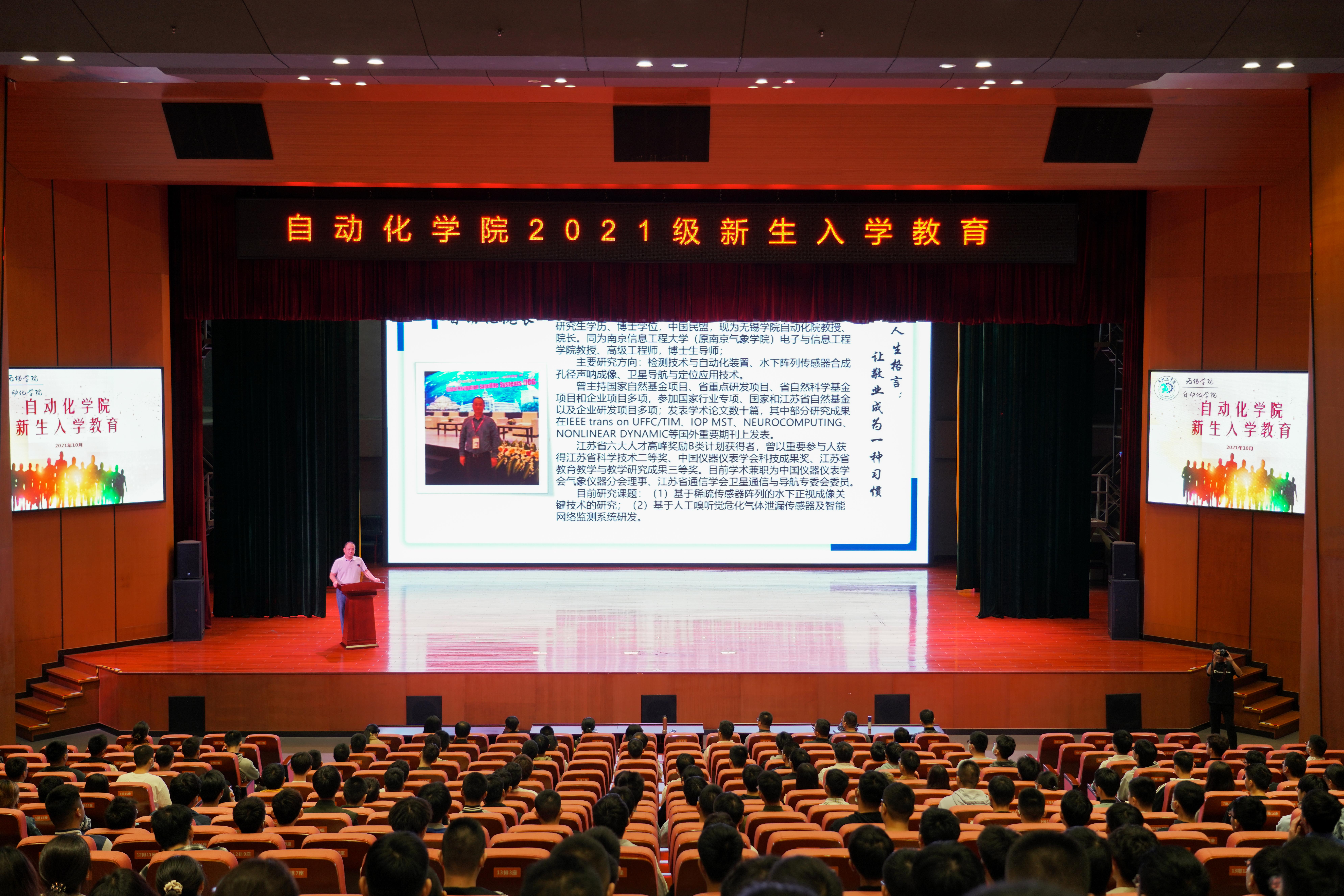 10月16日上午9点,无锡学院自动化学院2021级新生入学教育在滨江大礼堂二楼举行。自动化学院院长李鹏、各专业教师、实验人员以及全体辅导员出席典礼,仪式由姜胜老师主持。