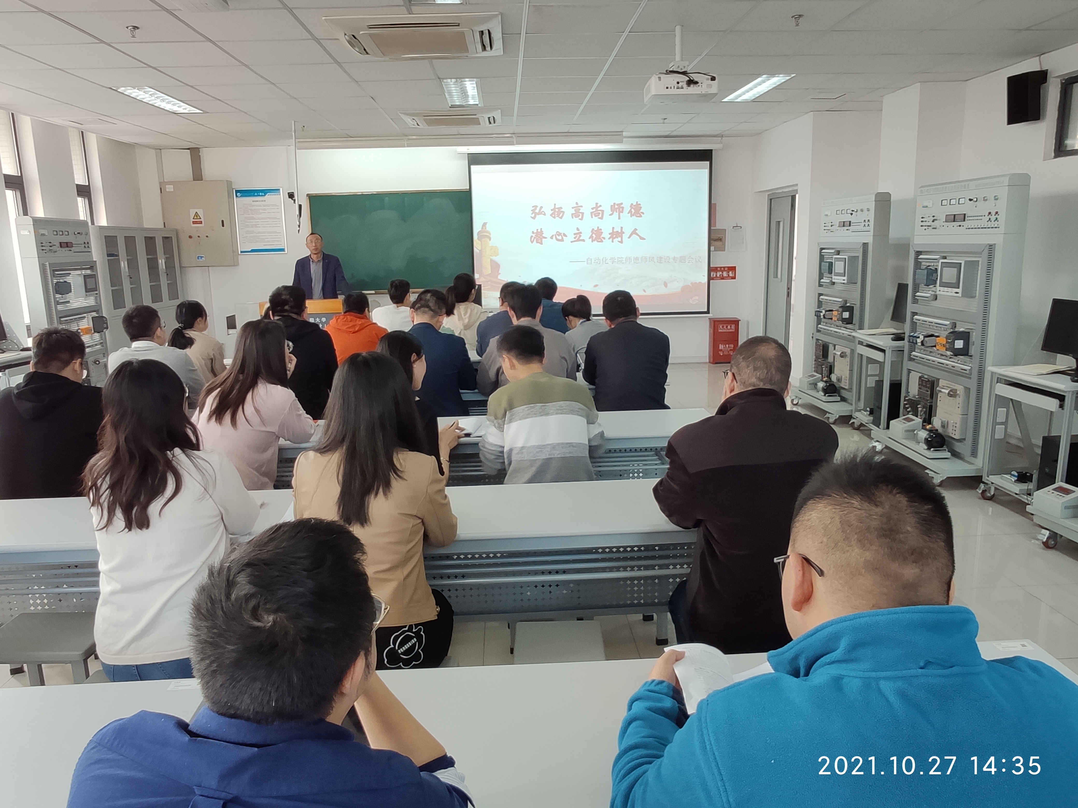 10月27日,为深入学习习近平总书记关于师德师风的重要论述,自动化学院在思齐楼309教室召开院教工大会,开展“学四史、强师德、担使命”专题活动,由自动化学院党总支书记丁留贯主持。