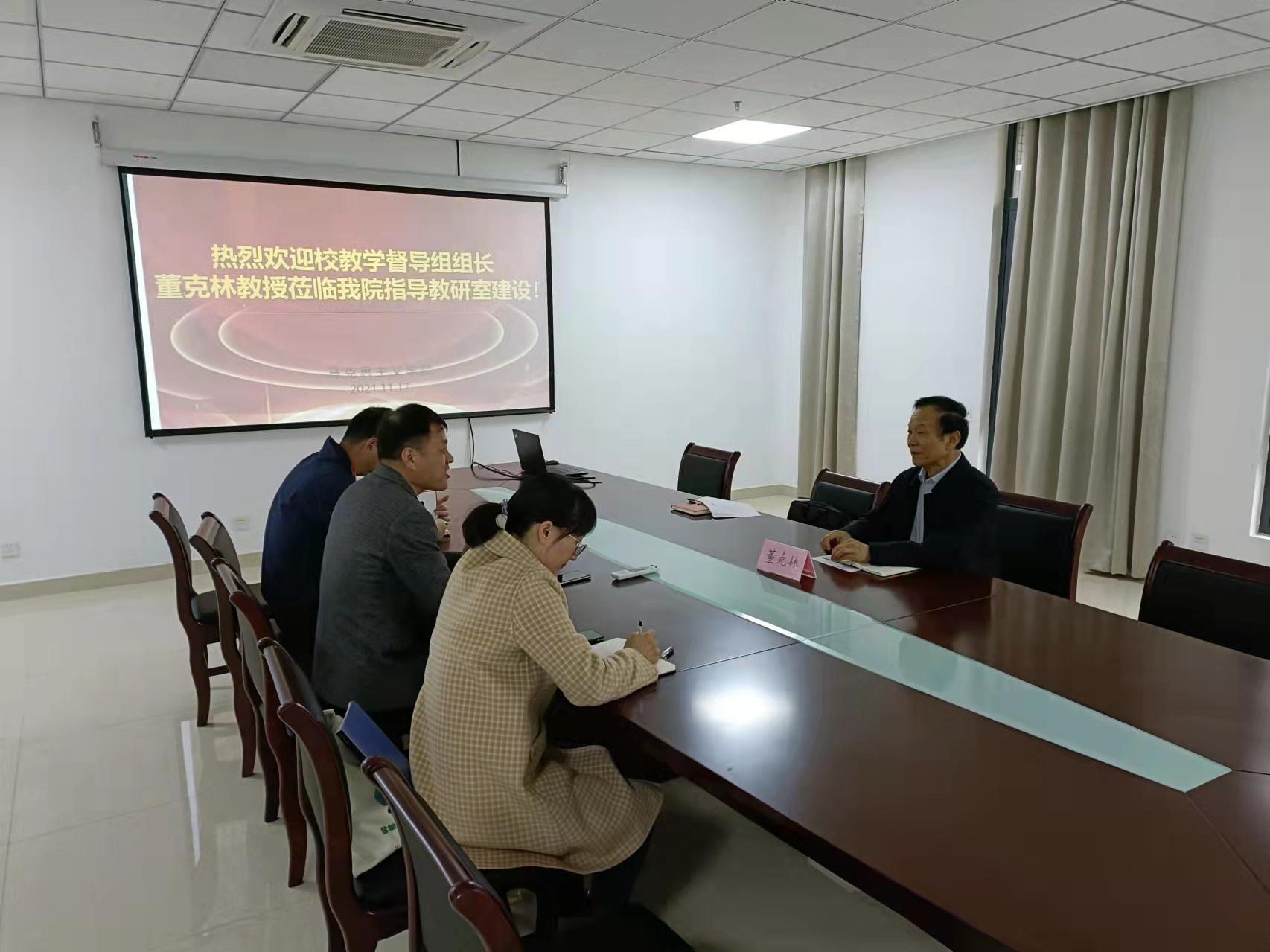 11月17日下午,无锡学院教学督导组组长董克林教授深入马克思主义学院,对教研室建设工作进行了指导和经验分享,马院教研室主任张毅、沈妉、瞿华,教学秘书陆力文参加会议。