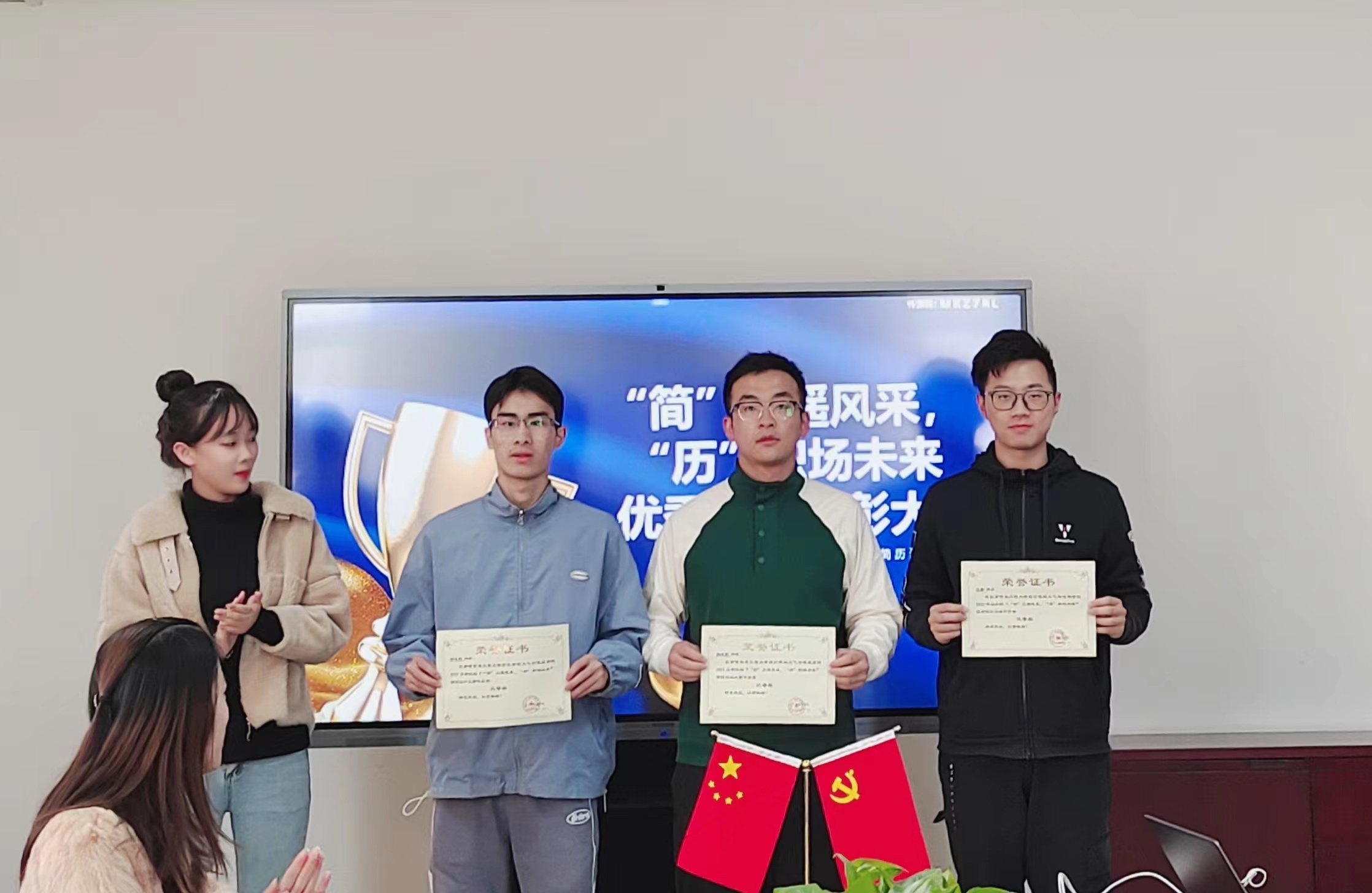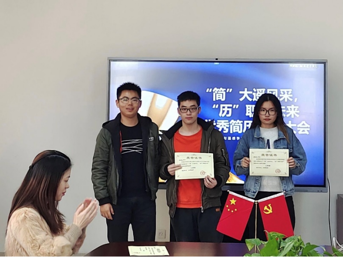 为提升大气与遥感学院学生求职技能水平,提升自我认知与职业探索能力,全面提高学院学生的综合素质,学院举办了本次“‘简’大遥风采,‘历’职场未来”简历大赛。本次大赛面向大气与遥感学院2018级全体同学进行征集,共收集五十余份简历。经学院专任教师和辅导员评选,共评选出一等奖1名,二等奖2名,三等奖3名。11月25日,学院在尚善楼507会议室举行了简历设计大赛表彰大会,分团委书记范雪主持,辅导员马瑞欣、张国宇和部分学生代表出席。