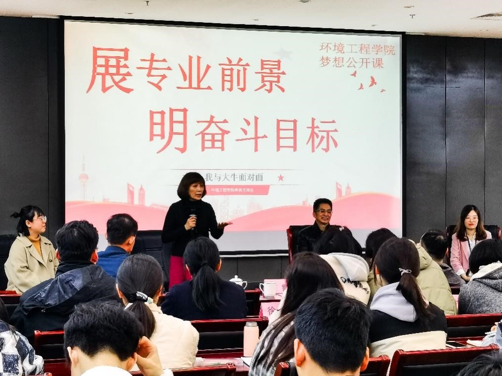 为开拓学生专业视野,提高专业认识度,12月12日下午,环境工程学院于校大礼堂103开展“展专业前景 明奋斗目标——我与大牛面对面”座谈会。无锡市检验检测认证研究院党总支书记、国信认证公司负责人吴建国,中国无锡华瑛微电子技术有限公司董事长温子瑛和无锡合全药业有限公司无菌制剂研发分析负责人高立蕊受邀做主题发言。校党委副书记匡辉,环境工程学院党总支书记李沛武,环境工程学院负责人王霞及学院全体师生参加此次座谈会。座谈会由学院分团委书记马丽娜主持。
