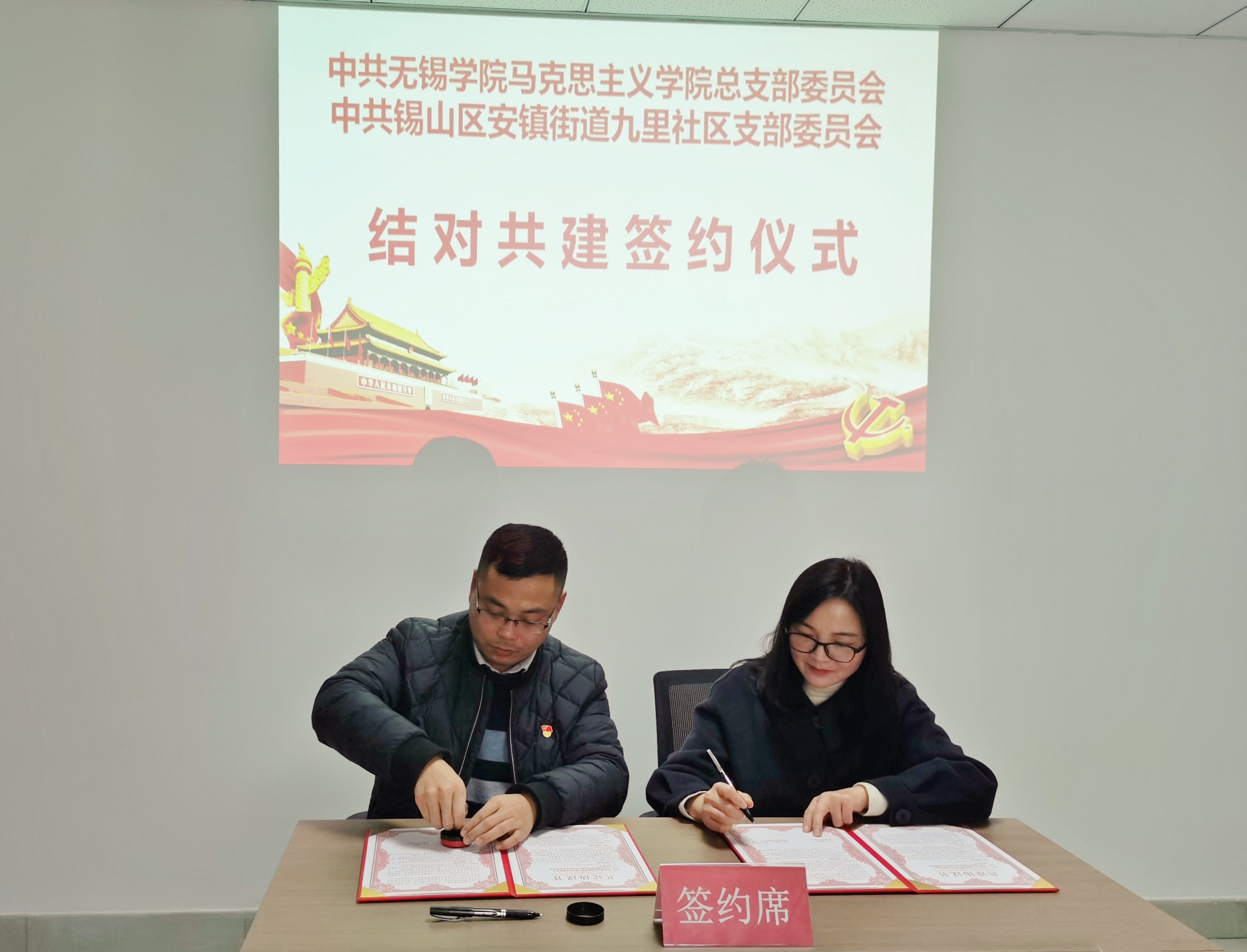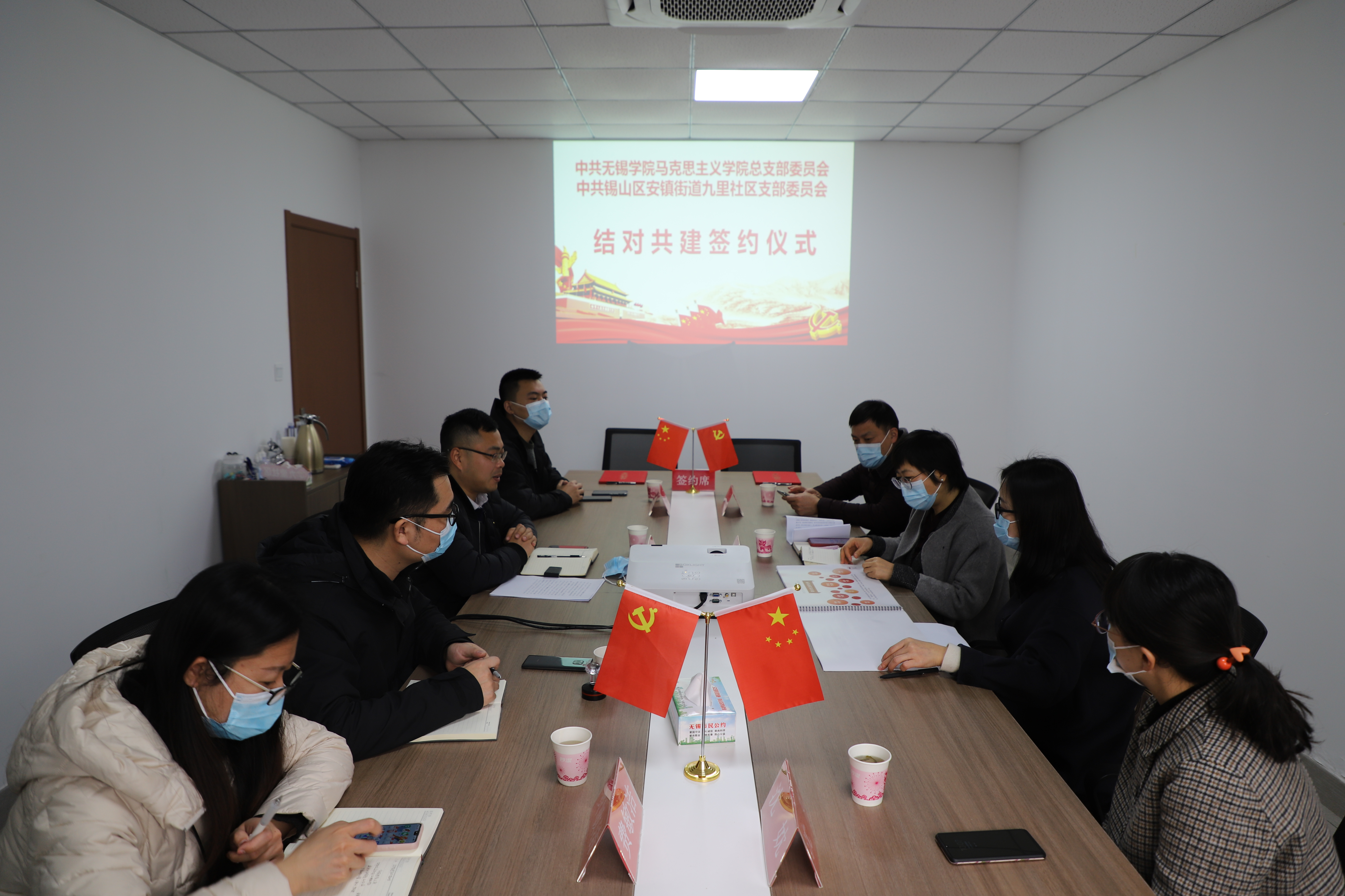 为了深入贯彻落实十九届六中全会精神,打造高校与社区共建共治共享新局面。1月6日上午,马克思主义学院与九里社区结对共建签约仪式在九里社区党群服务中心举行。校党委宣传部负责人程艳丽、马克思主义学院负责人王玉萍,马克思主义学院教师张毅、沈妉参加此次活动。