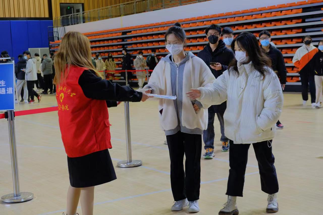 为确保核酸检测工作高效平稳有序开展,学校统一部署规划,各部门密切配合,定岗定人,协调统筹,制定了详细的工作方案。核酸检测现场,参检人员自觉间隔一米排队,提前准备好身份证和学习通app,即采即走,检测过程组织科学、防护到位、井然有序、有条不紊。