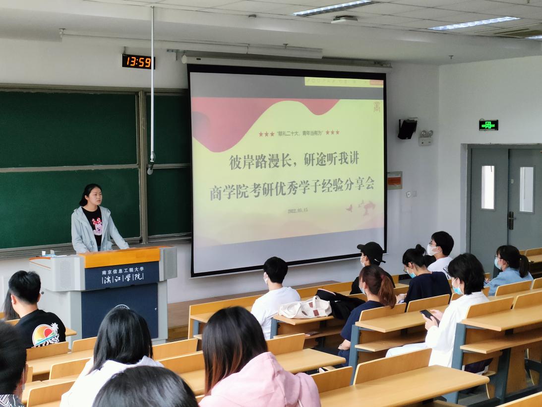 为进一步宣传青年学生的先进事迹和精神风貌,积极发挥优秀大学生在学风建设中的示范带动作用,教育引导青年勤于学习、勇于创新、甘于奉献、自强不息,全面提升个人的综合素质。商学院于5月15日下午在尚美楼教室开展了“彼岸路漫长,研途听我讲”考研优秀学子经验分享会,邀请了2018级4位考研优秀学子交流分享,商学院19级、20级、21级学生参加此次分享会。