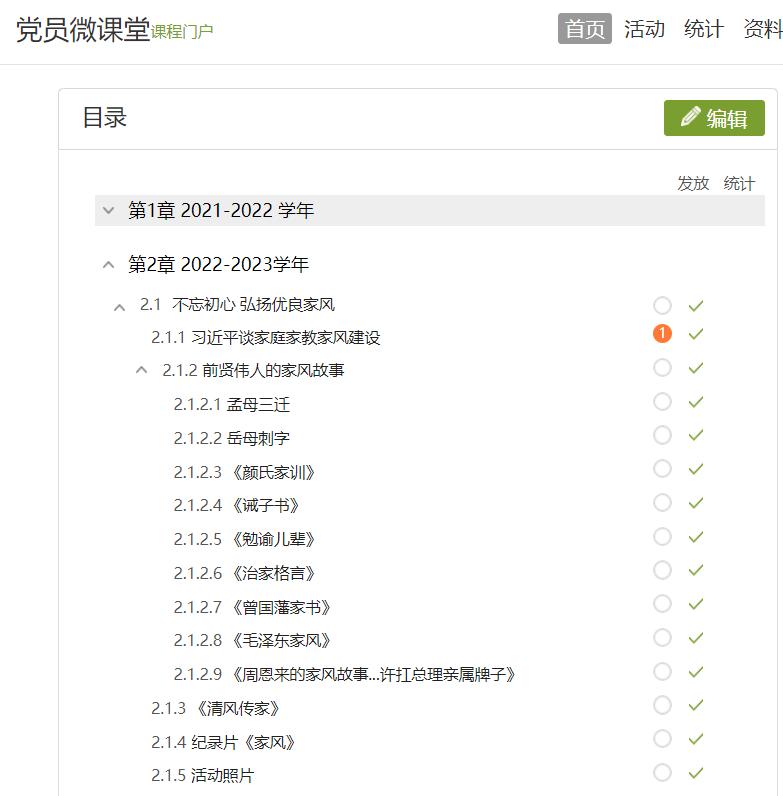 教工党支委提前在超星学习通平台“党员微课堂”课程上传了本次活动的相关学习资料,主要包括《习近平关于注重家庭家教家风建设论述摘编》、前贤伟人家风故事、《清风传家》、纪录片《家风》等内容。从2021年起,自动化学院教工党支部在超星学习通平台建立了“党员微课堂”课程,全体支部党员和入党积极分子均加入课程的学习,便于学习资料的发放和开展灵活多样的学习活动。