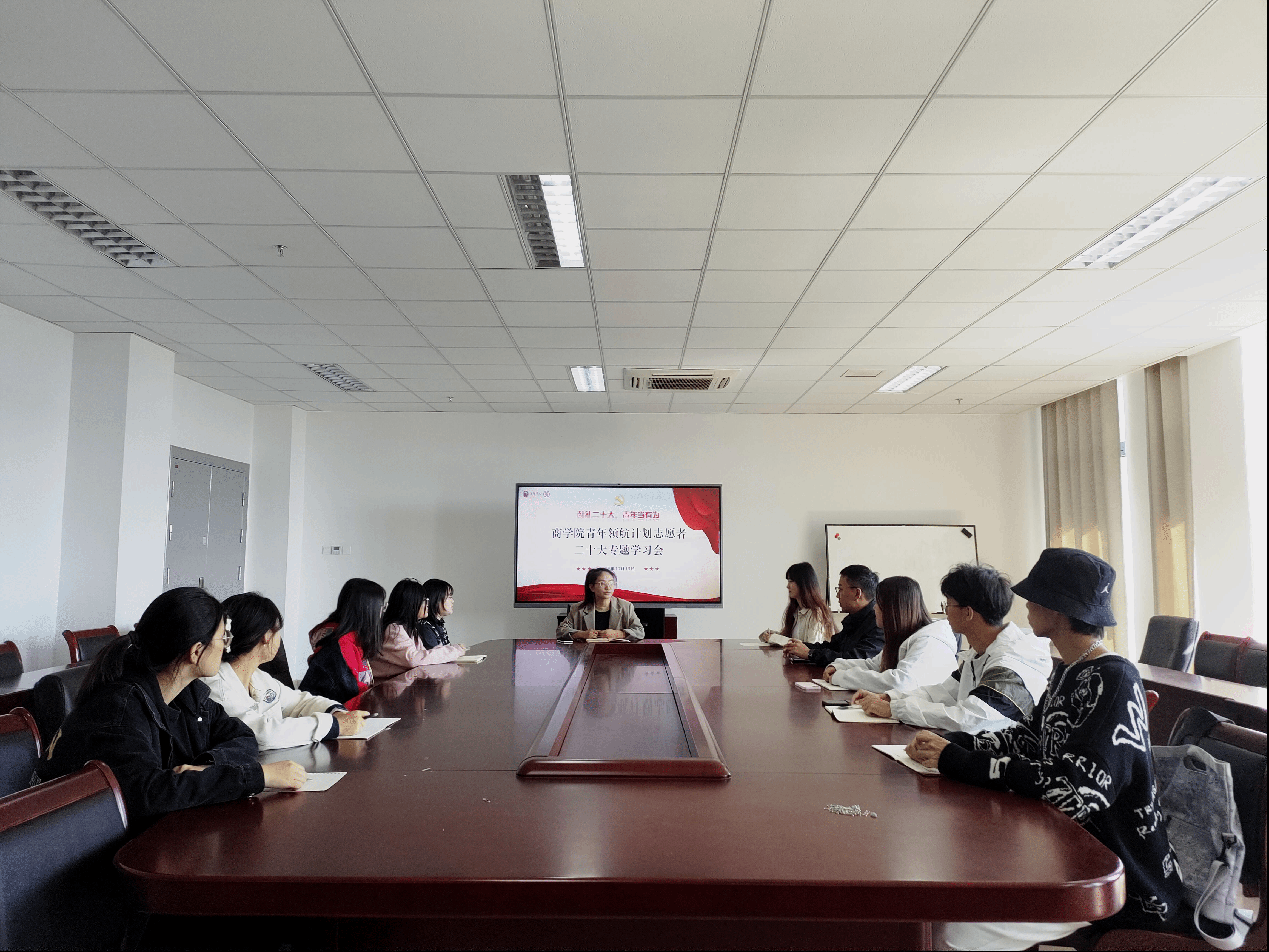 为深入领会党的二十大报告的重要精神,提升我院志愿者服务能力,同时加强新生管理教育工作,商学院于10月19日下午在尚美楼504组织开展青年领航计划志愿者党的二十大专题学习会。商学院全体青年领航计划志愿者参加学习,会议由商学院分团委书记李诗雅主持。