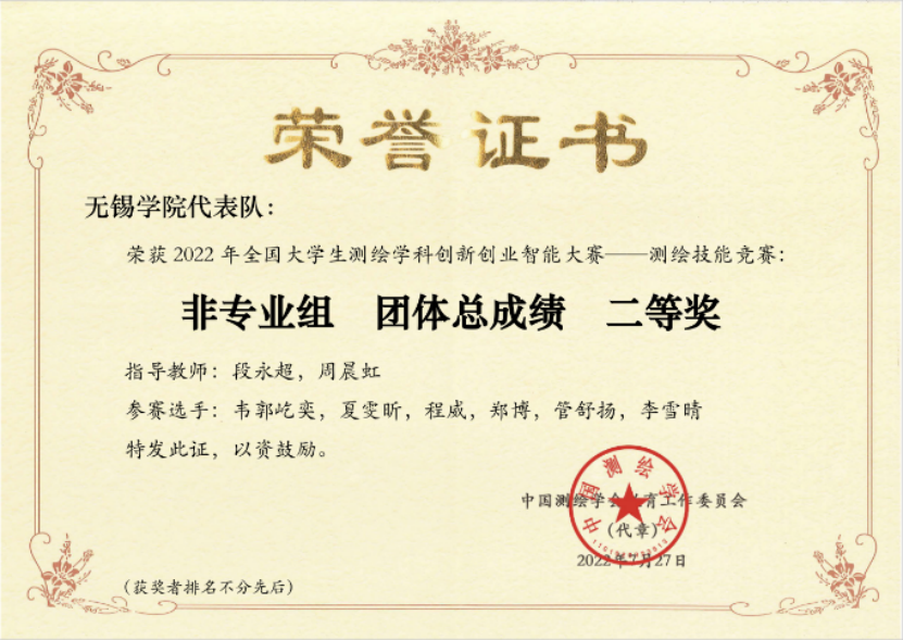 本次比赛,学院高度重视,做好备赛参赛工作。大遥院组织测绘工程系骨干教师组成专业指导团队,于今年4月开始积极备赛,克服疫情等不可抗力因素的影响,不断根据竞赛细则的调整优化比赛策略,强化学生的专业实践技能,大力提升学生自身的专业测图能力、编程能力和论文写作能力。本次赛事取得的优异成绩是大遥院推动学科竞赛工作制度化、常态化和长效化的成果。大遥院近年来以学科竞赛为重要抓手,不断加强学院顶层设计,坚持以赛促学,以赛促教,大力推动专业学子在各类学科竞赛中取得骄人成绩。测绘技能大赛面向国家测绘人才培养需求,为在校学生提供一个充分展示技术水平和操作能力的竞技舞台,参赛同学以大赛为契机,以赛促学,以赛交流,强化了专业实践技能,提升了创新创业能力。(大气与遥感学院/文:周晨虹,图:陈柯如;审核:刁一伟)