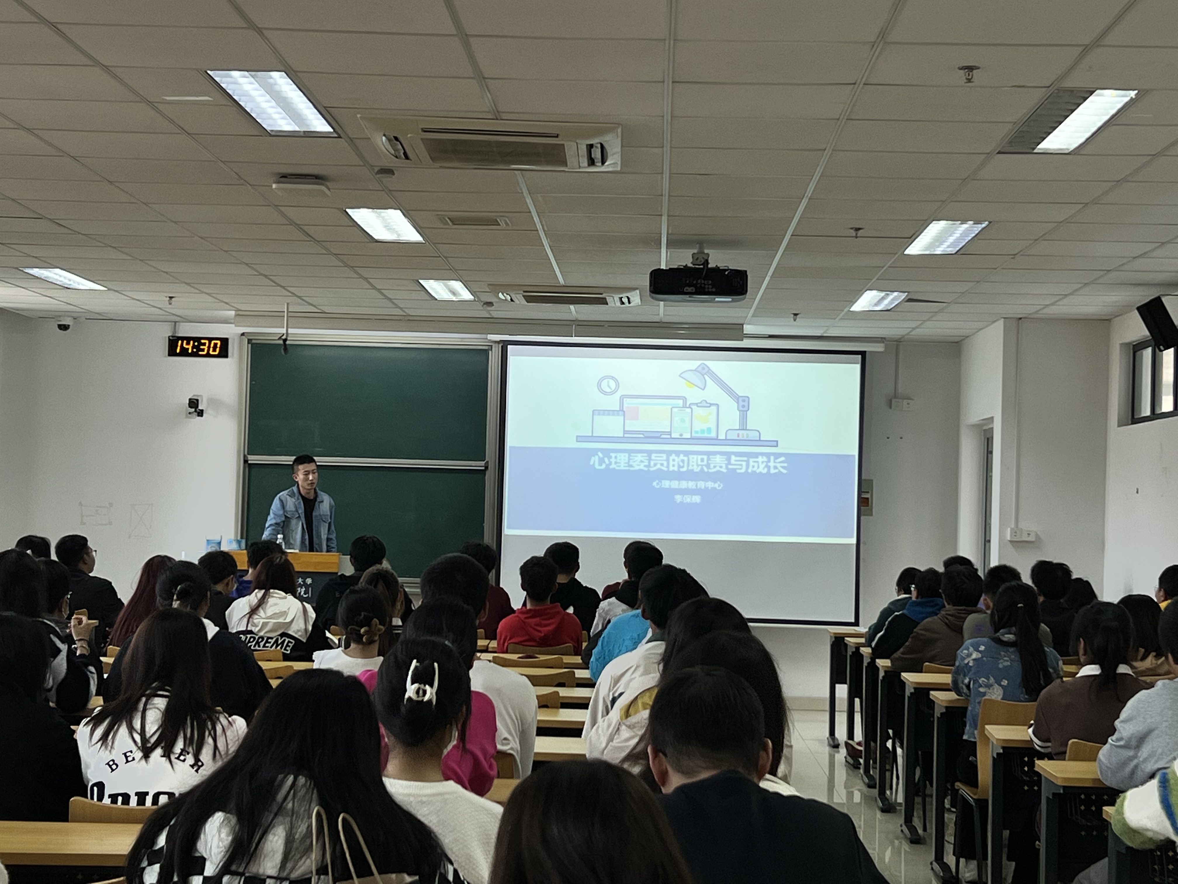 11月2日,我校秋季学期心理委员专题培训讲座在尚美楼211教室举行。本次培训由学生工作处心理健康教育中心李保辉老师主讲,全校2022级80余名心理委员参加了培训。